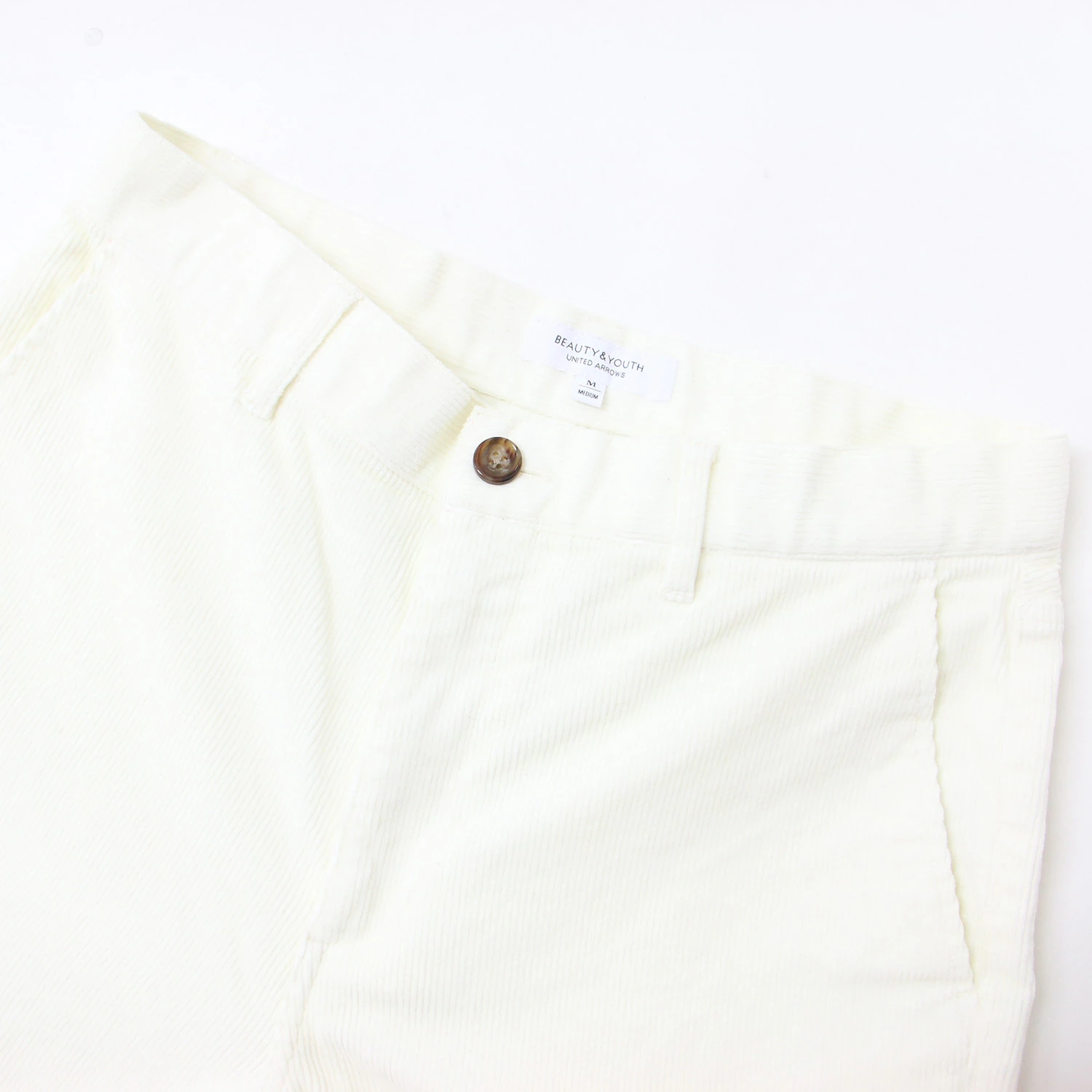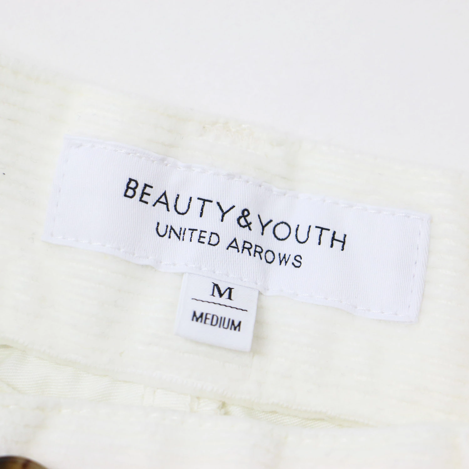 BEAUTY&YOUTH Off-White Corduroy Tapered Pants, Size M (11W), Cotton Stretch, Women's, Pre-owned, K4618