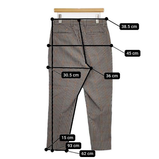 | 実寸サイズ | 総丈:約93cm ウエスト:約38.5cm 股上:約36cm 股下:約62cm ヒップ:約45cm ワタリ幅:約30.5cm 裾幅:約15cm ※採寸画像がある商品はハンガーに吊るした状態での計測のため、平置きでの採寸とは差が生じる場合がございます。平置きでの実寸サイズをご希望の場合は、ご購入前に必ずご質問ください。 ※記載以外のサイズが合わないことを理由とした返品はできませんので、 記載部分以外で実寸サイズの気になる箇所があれば必ず購入前にご質問ください。 |