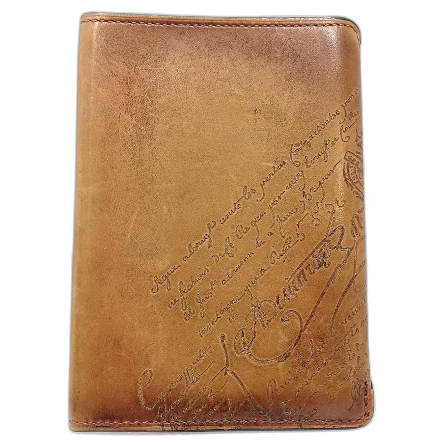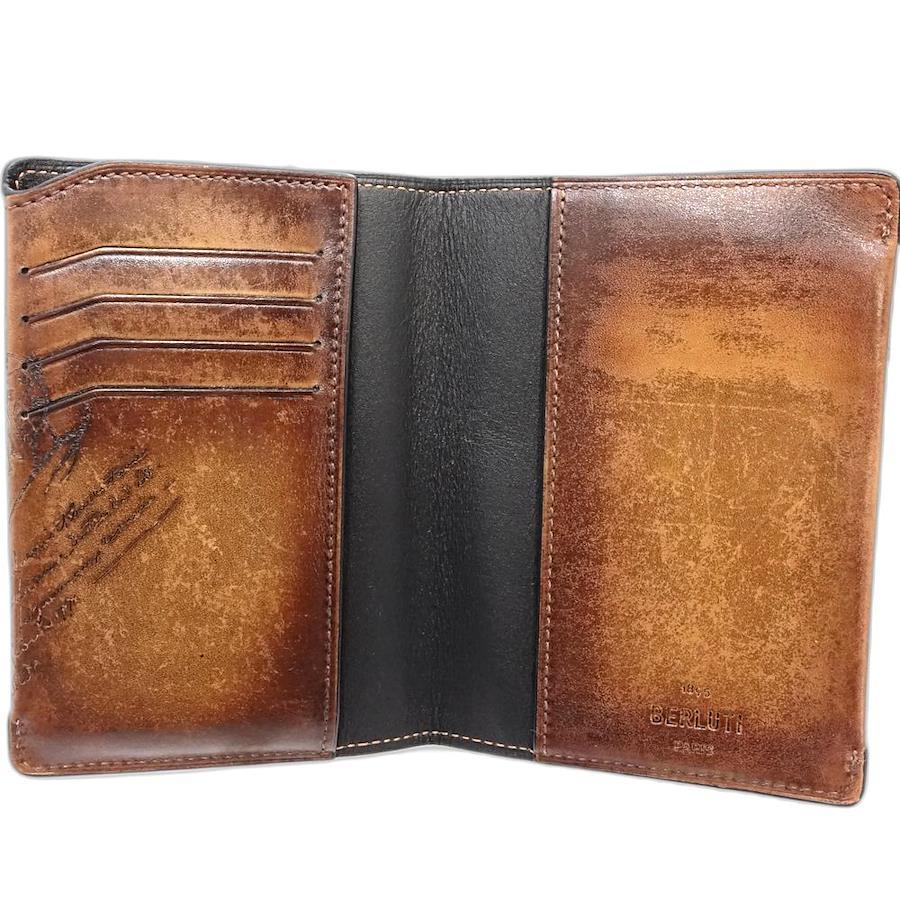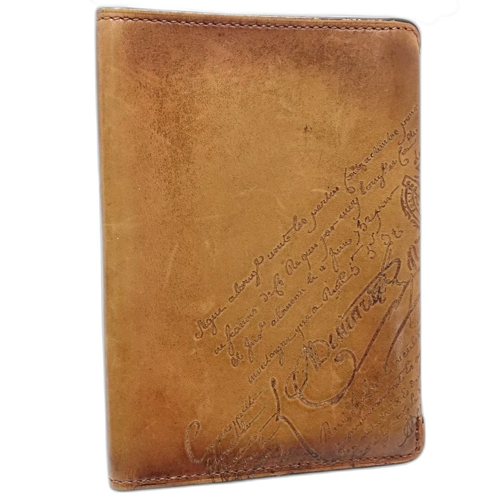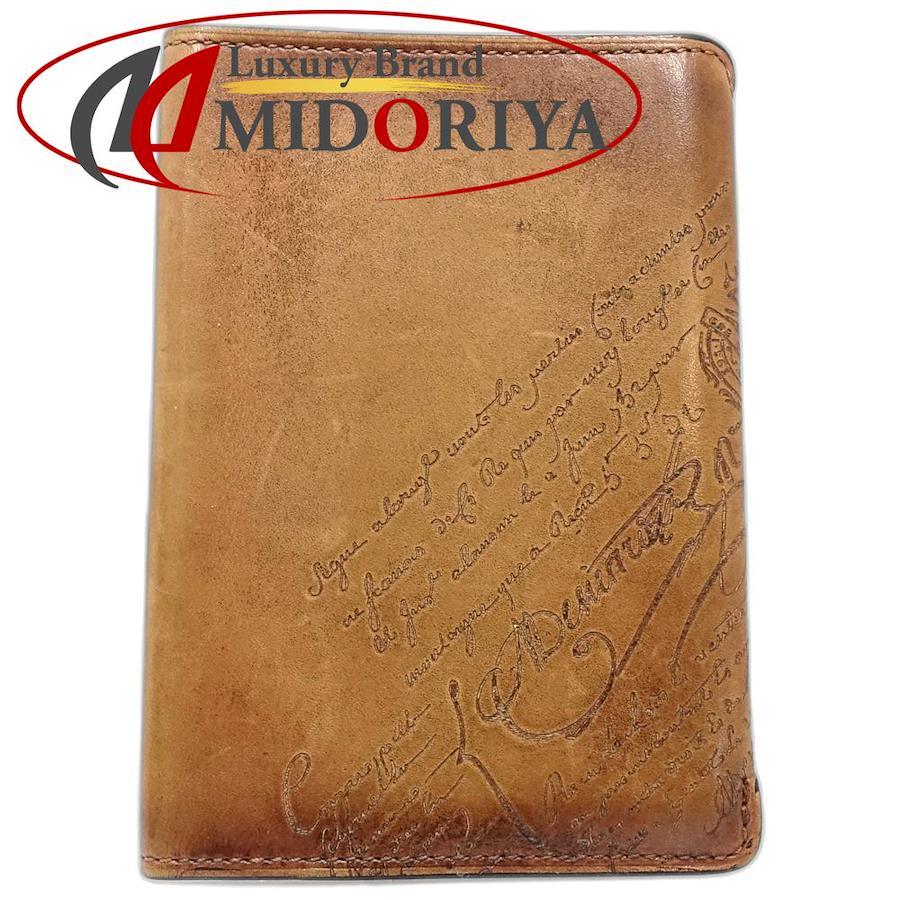 Berluti Calligraphy Passport Case, Venezia Leather, Brown, Men's, 181891 (Pre-owned)