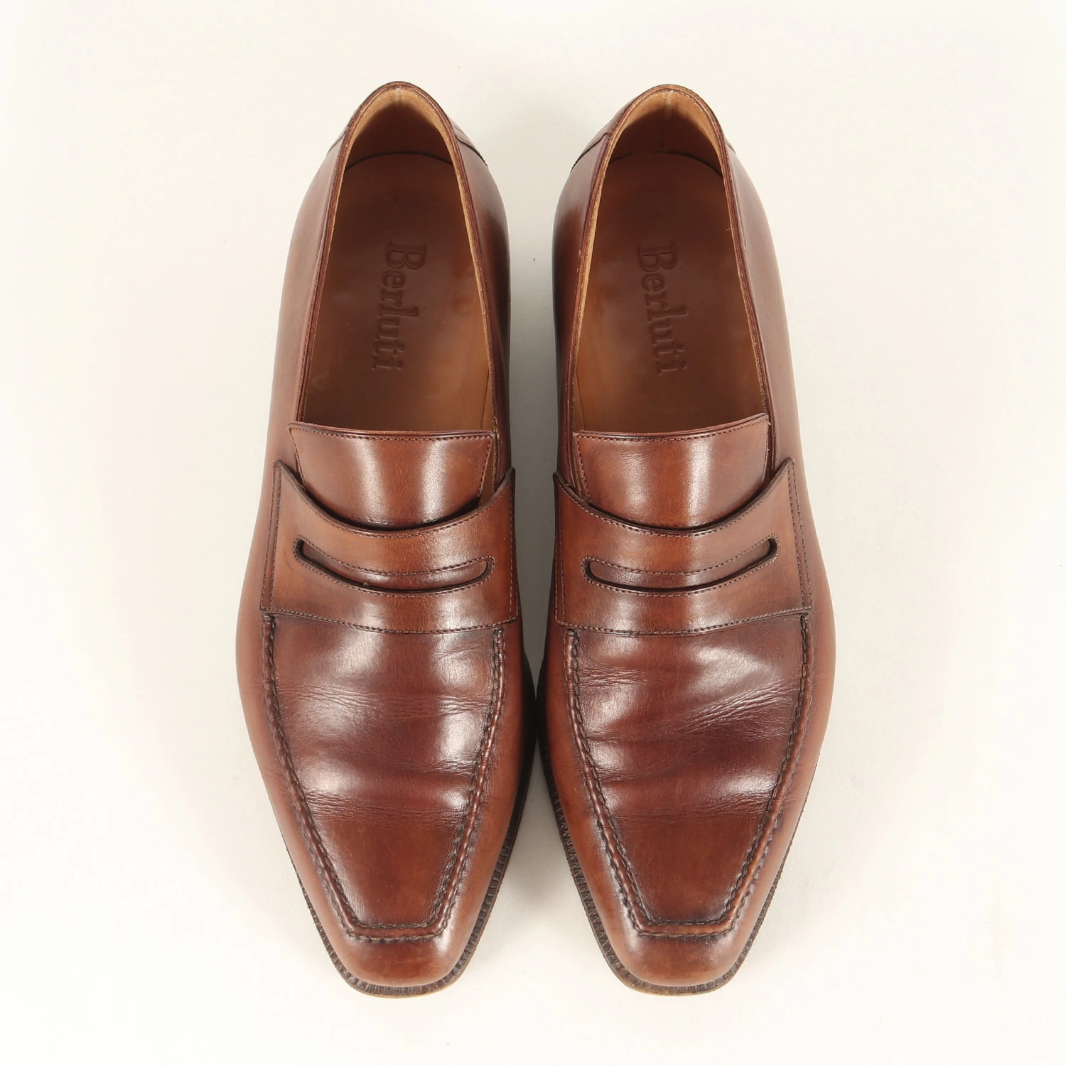 Berluti Demeure Leather Loafers (ANDY), Size 8 (equivalent to a 26.5cm shoe), Brown, Men's, Pre-owned, Brand Name Shoes, Leather Shoes, K4623