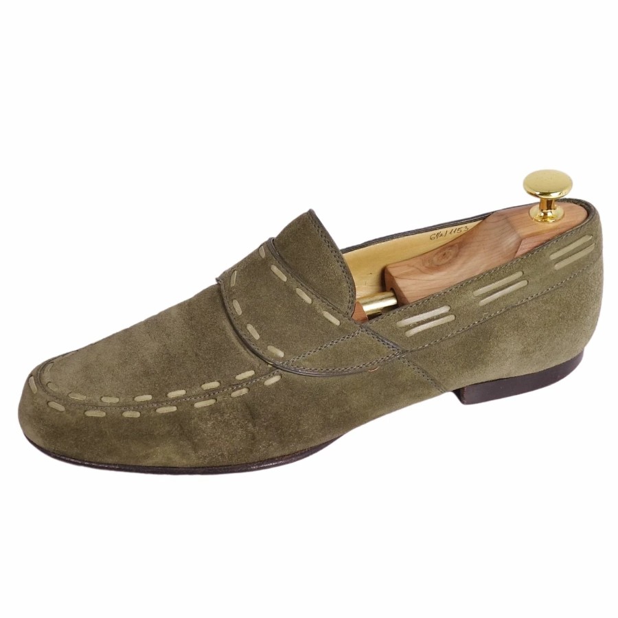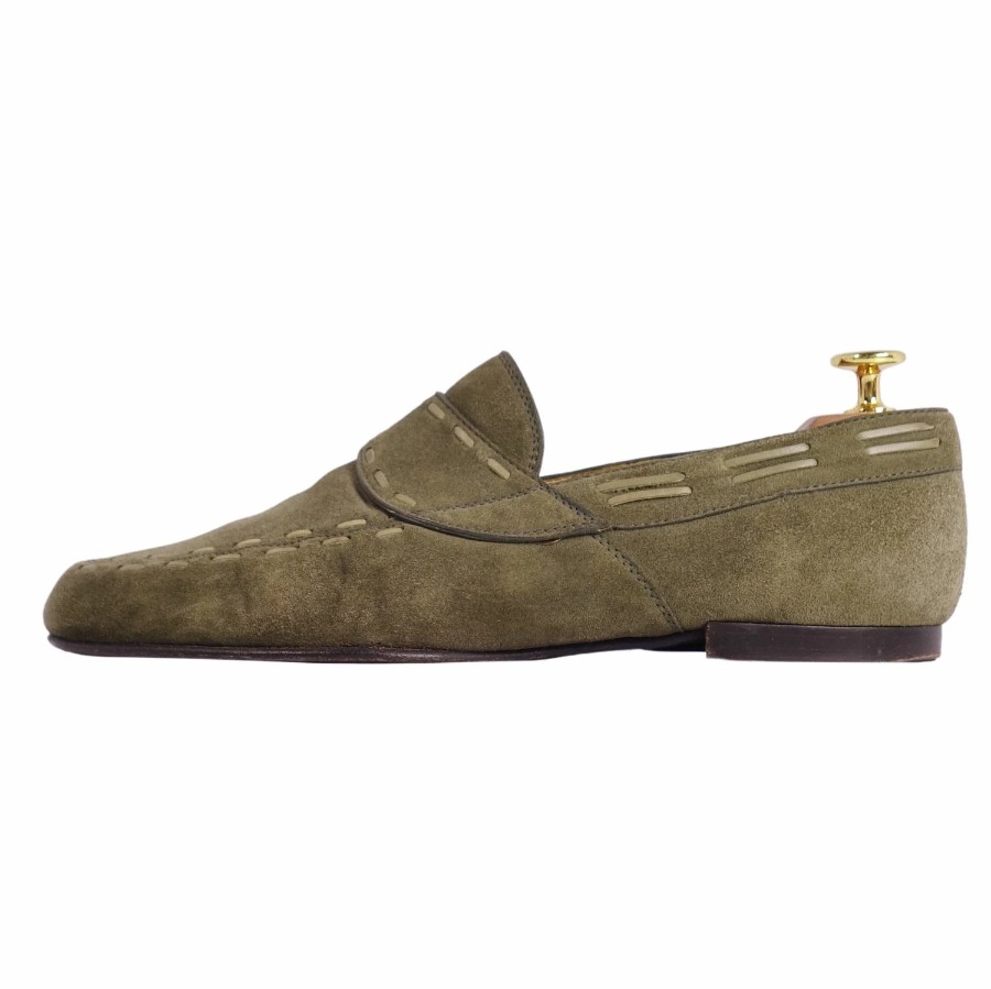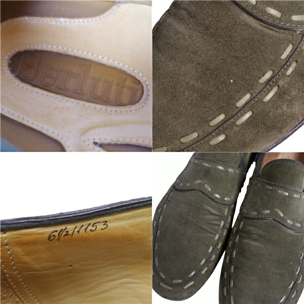 ベルルッティ Berluti ローファー モカシン スウェードレザー 革靴 メンズ カーキグリーン サイズ6.5(25.5cm相当)