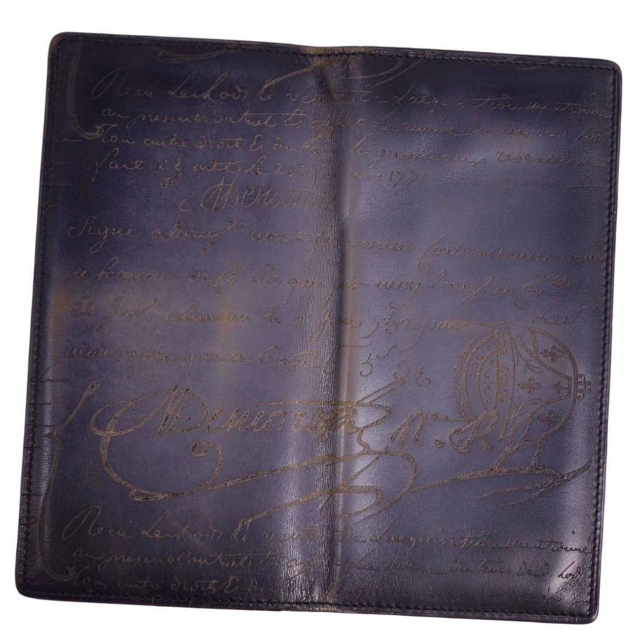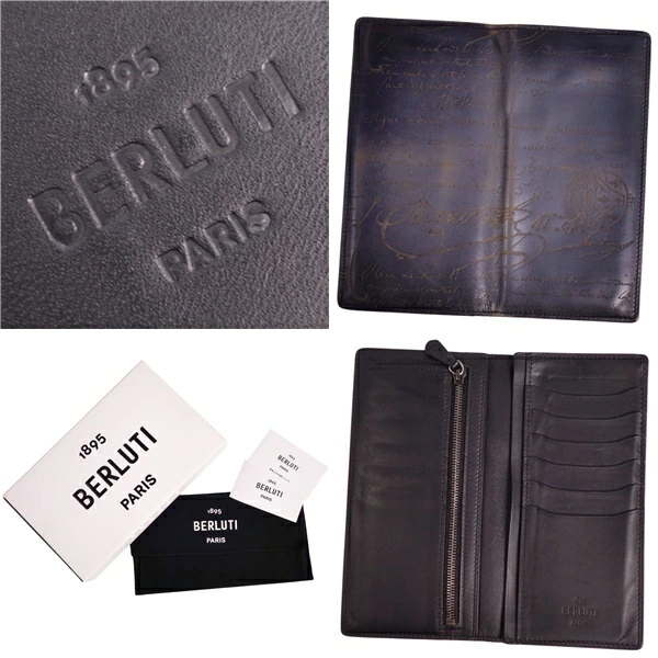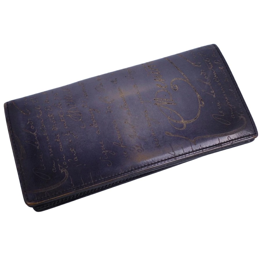 ベルルッティ Berluti 財布 長財布 ロングウォレット カリグラフィ スクリット レザー メンズ イタリア製 ネイビー サイズ-