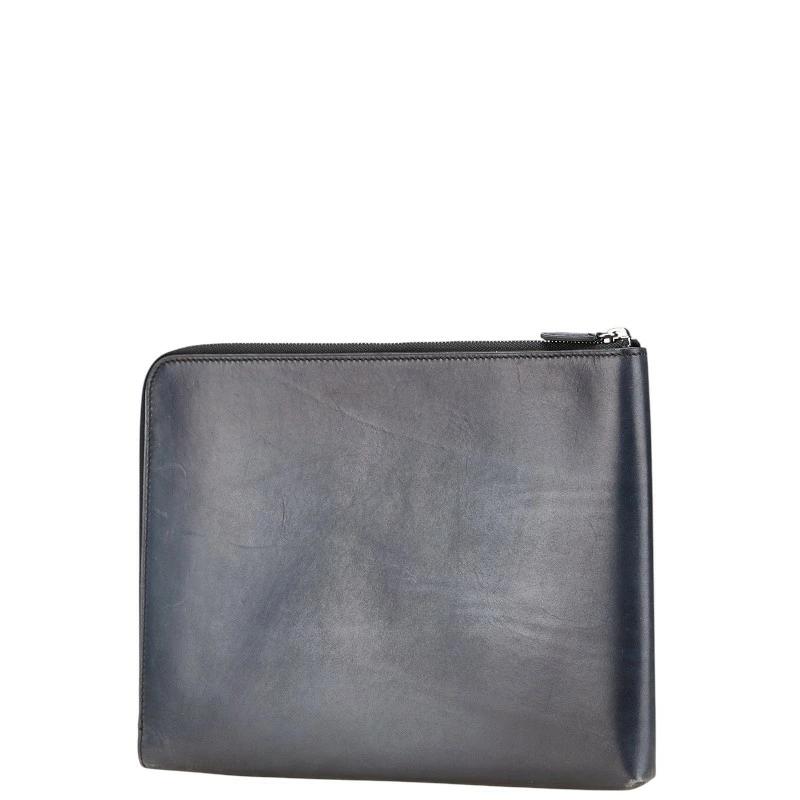Berluti Nino GM Clutch Bag/Second Bag, Navy Leather, Men's, Pre-owned