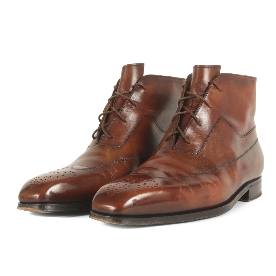 Berluti Olga Trois Medallion Wingtip Leather Boots, Size: 6.5 (JP 25.5cm), Brown, Brand Shoes, Men's, Used, K4788