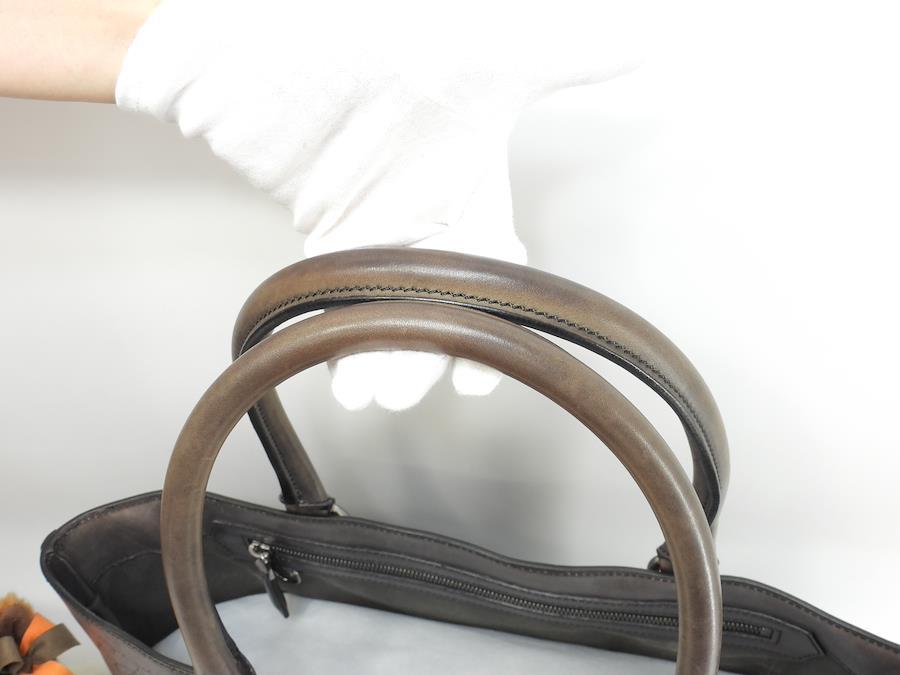 情報 : ボディは使用による薄スレ・色褪せが全体的にございます(ベルルッティ直営店で色の入れ直し可能です)。底部角にスレが少しございます。ハンドルは薄スレ・薄汚れ・色褪せが全体的にございますが、弱りはございません。バッグ内は色褪せ・薄汚れ・薄スレが少しございます。金具部分は薄スレ・小傷が少しございますが、メッキ剥げもなく綺麗です。
