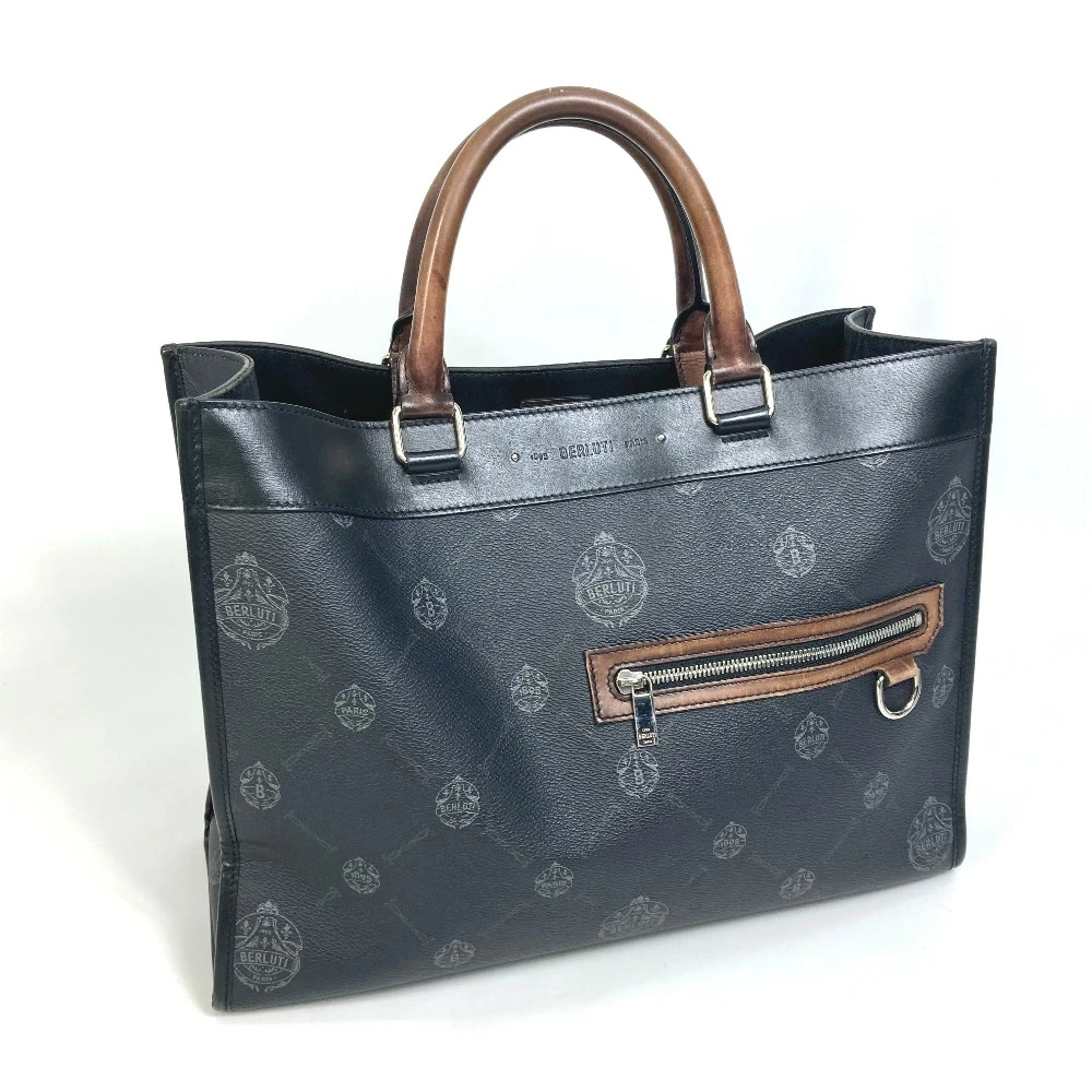 Berluti Ulis Small 2-Way Shoulder Bag/Tote Bag in Canvas/Leather, Men's, Black [Pre-owned]