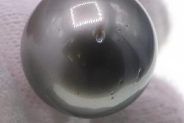 ブラックパールは比較的、真円です。表面にはあさいえくぼがいくつも見られます。カラーはやや色ムラがあります。