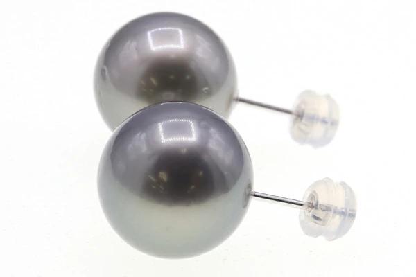 Black Pearl Earrings, 13.5mm, 14K White Gold, Pre-owned, Earrings, Accessories, Jewelry, Black Pearl, Women's, Studs, BlackPearl