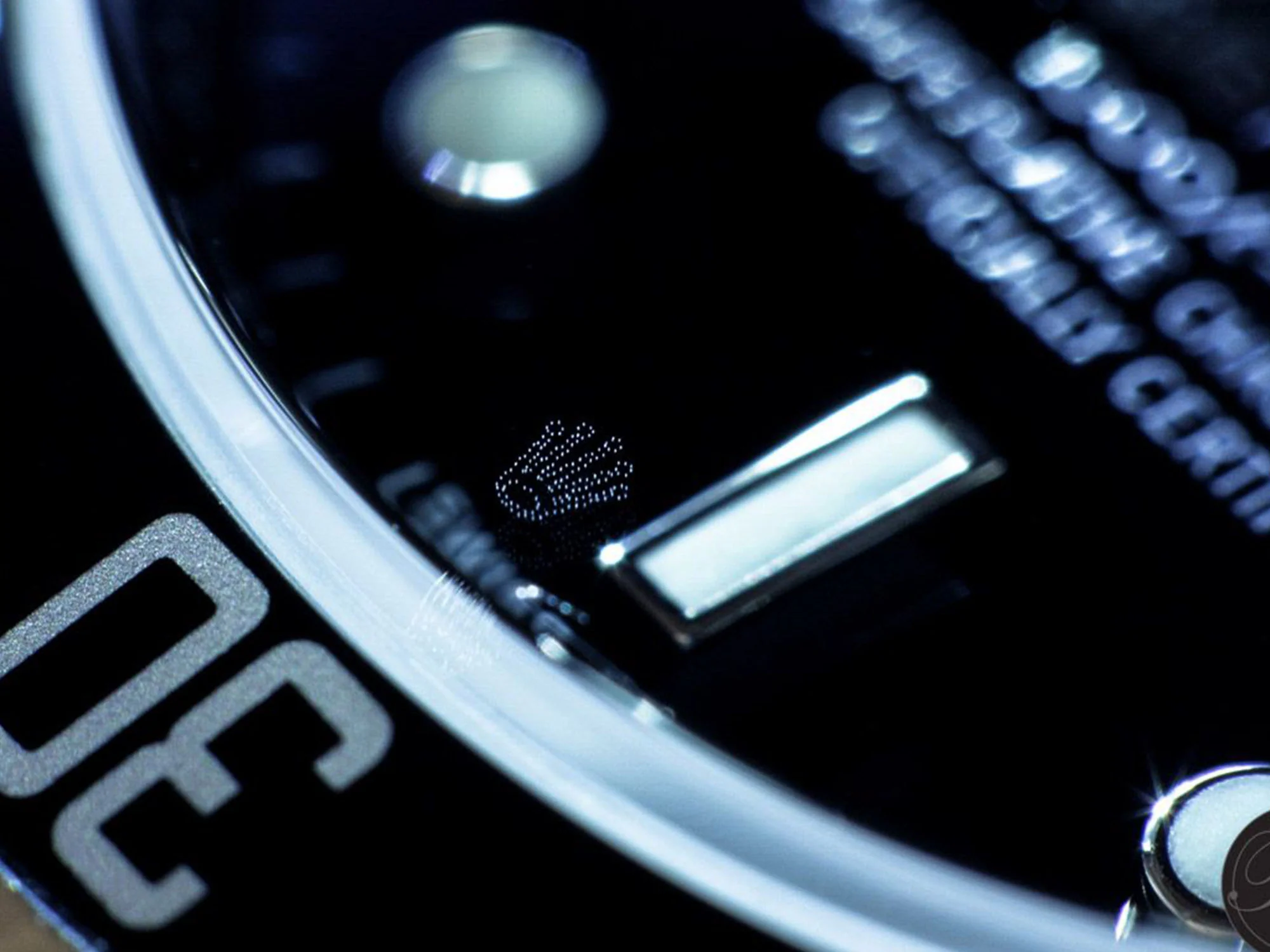 The magic lies in how Rolex does it: the crown isn’t made from one continuous line, but from minuscule dots etched at different depths within the crystal itself. This level of detail is incredibly hard to replicate, which is why fakes often exaggerate the crown to make it easier to spot. On the real deal, however, it’s subtlety that offers the strongest reassurance.