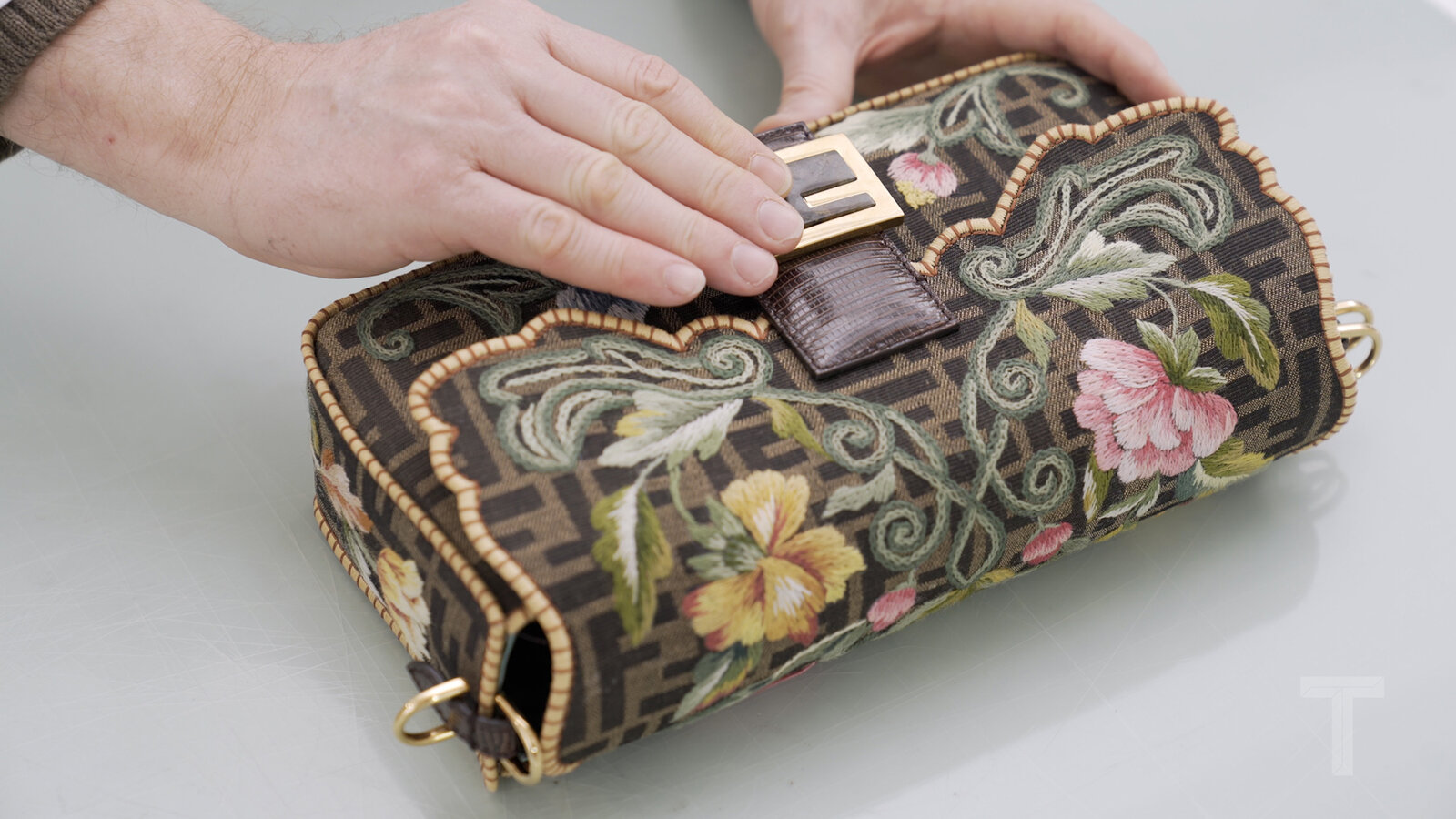 The Baguette’s genius is its scale and simplicity: a short shoulder strap, a flat rectangular body, and a flap anchored by the double-F clasp. That deceptively minimal canvas gave Fendi endless room to play with materials—leathers, embroidery, beadwork, sequins, denim, and technical nylons—without losing the bag’s essential outline.