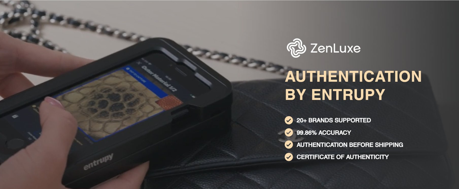 ZenLuxe ensures each item is authentic with airtight Entrupy-powered verification.