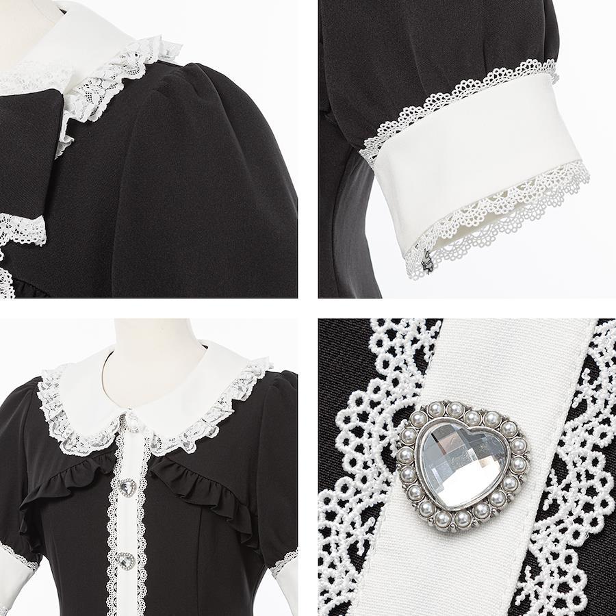 フリルボレロデザインがかわいいセットアップが登場♪【デザイン】ボレロ風デザインのかわいいセットアップが新作で登場です♪ケミカルレースがあしらわれて、胸元の大きなリボンがワンポイントになっています。ハートパールボタンがかわいく、上品に見せてくれます。胸元リボンは安全ピンで取り外し可能です。後ろファスナーで着脱可能です。一枚で主役級に可愛くなれちゃうセットアップです♪【素材】しっかりとした素材です。トップスに裏地がついています。ショートインナーがあると安心です。ホワイトは同色のインナーを着用をオススメ致します。【コーディネート】量産系コーデや双子コーデがオススメのアイテムです♪かわいくて映えること間違いなし!お揃いカラーのヘアアクセなど合わせてみてください!《透け感》カラーによってあり 《生地の厚さ》普通 《裏地》あり 《伸縮性》なし《生産国》中国