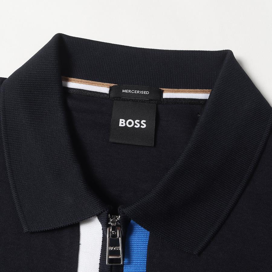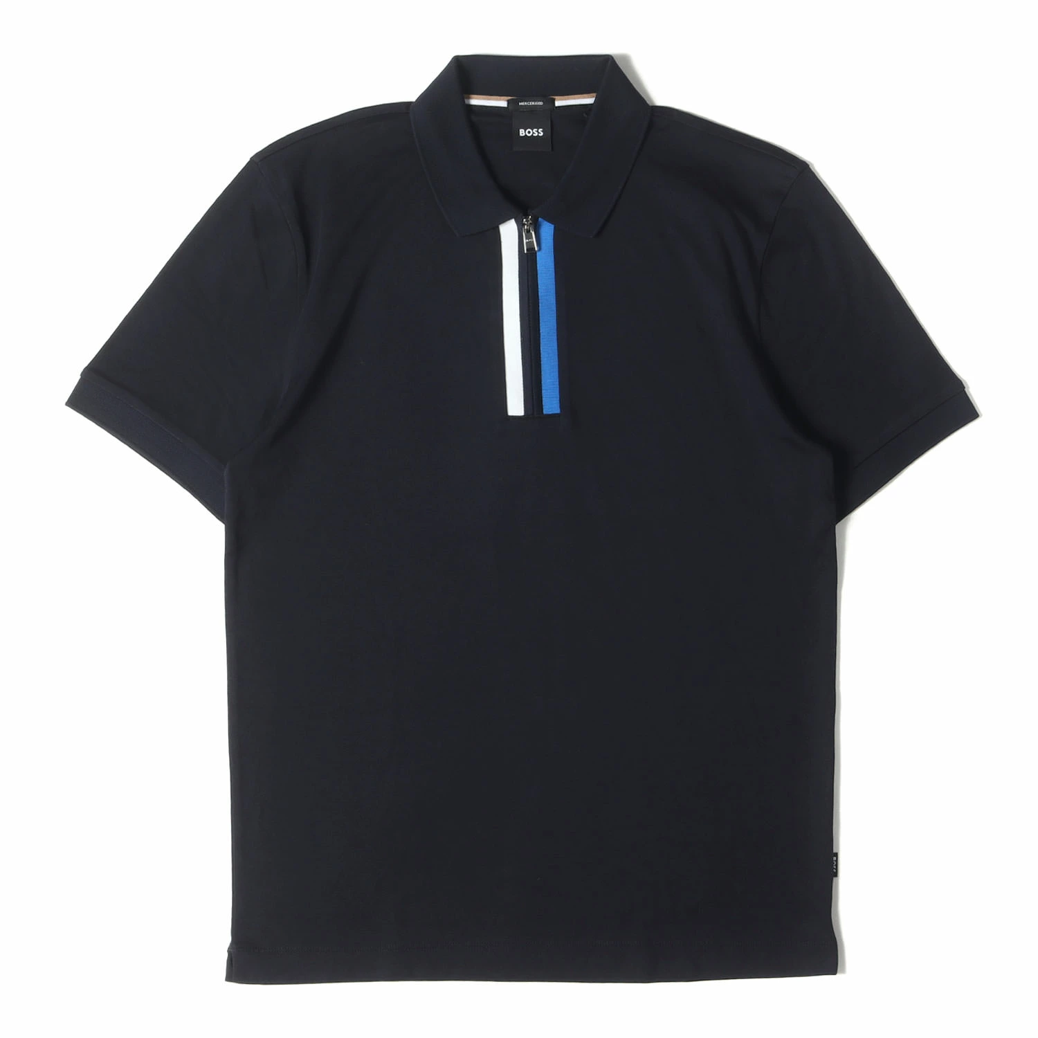 BOSS Men's Short Sleeve Polo Shirt, Size Small, Current Model, Mercerized Cotton Zip Polo Shirt, Navy Blue, K4615