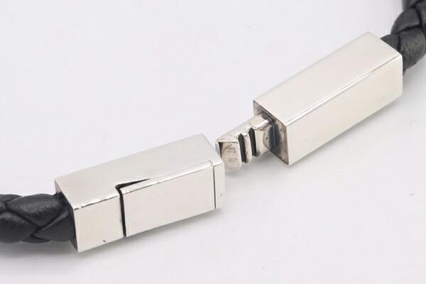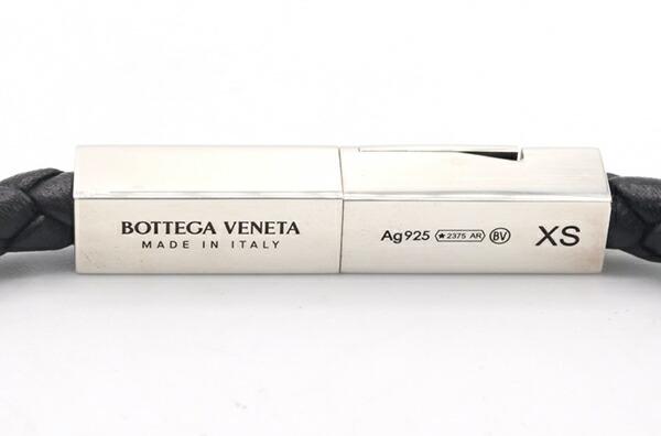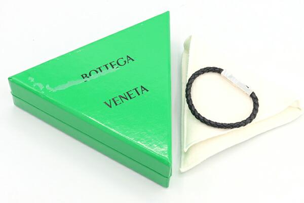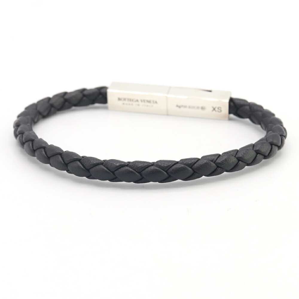 ボッテガヴェネタブレスレット732416ブラックシルバー金具SVスターリングシルバー925レザーサイズXS中古腕輪バングルアクセサリーレディースメンズBOTTEGAVENETA