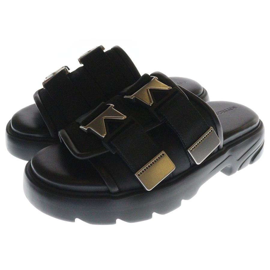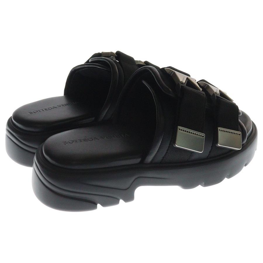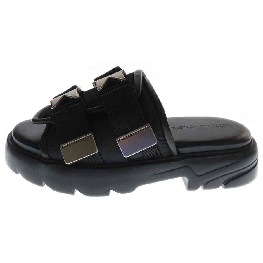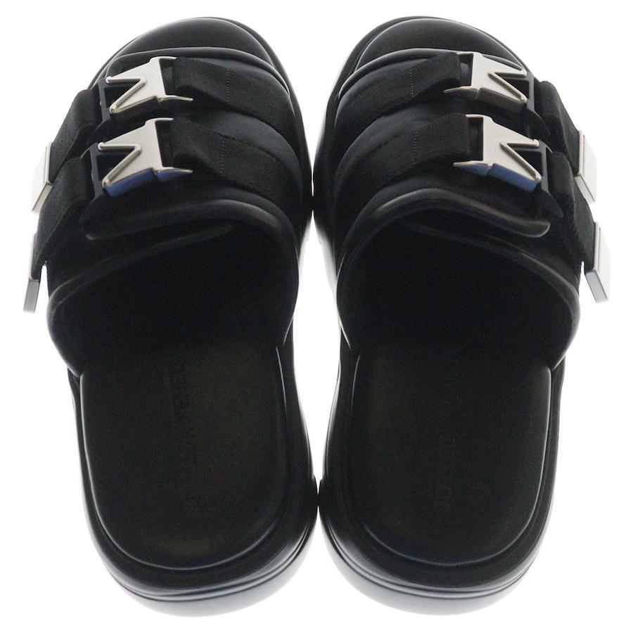 [モデル]FLASH フラッシュ ダブルバックル レザー ナイロン フラットサンダル ブラック/シルバー