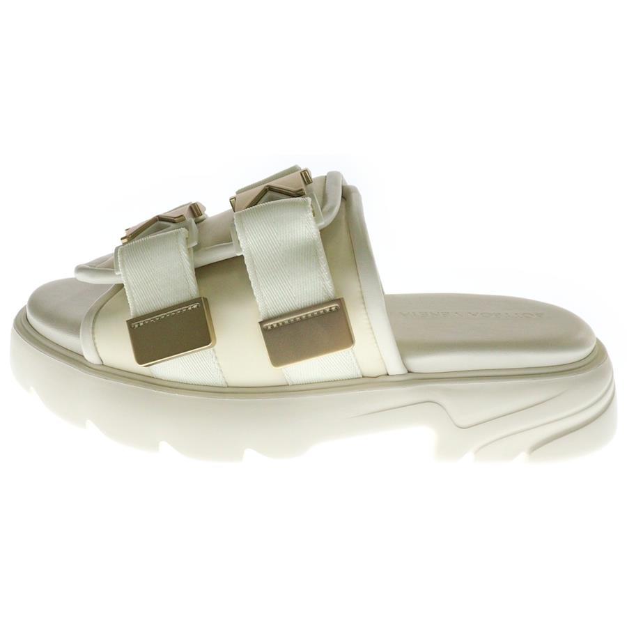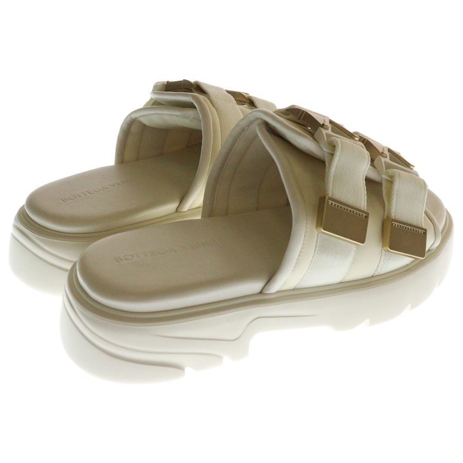 [モデル]FLASH フラッシュ ダブルバックル レザー ナイロン フラットサンダル ホワイト/ゴールド