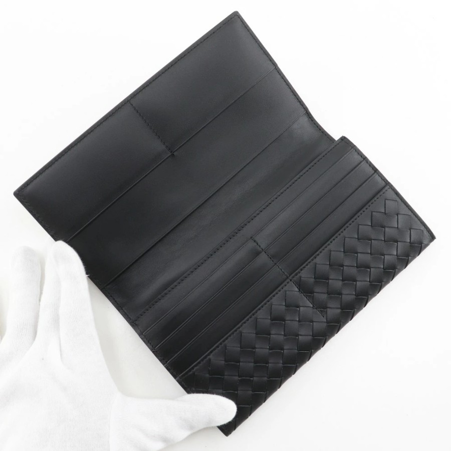 Bottega Veneta Intrecciato Bi-fold Long Wallet, Calfskin, Made in Italy, Open Type, Men's [Used] A+ Rank