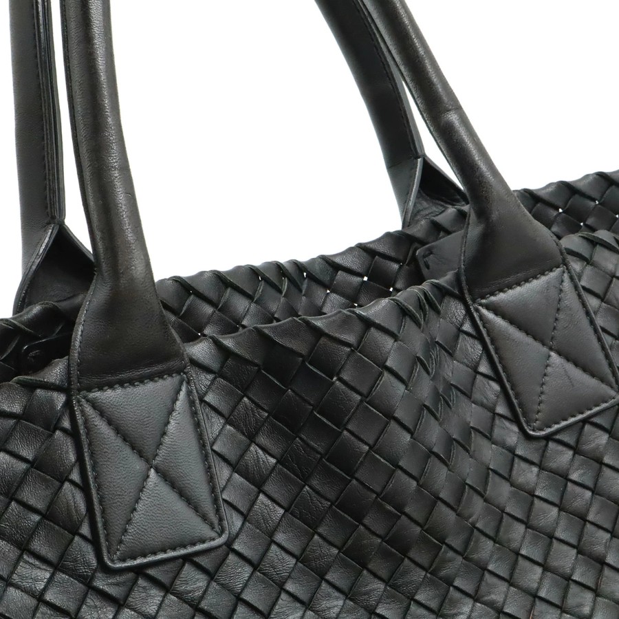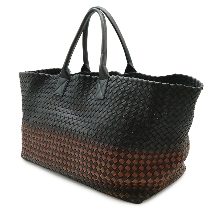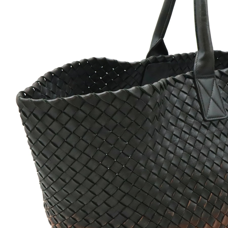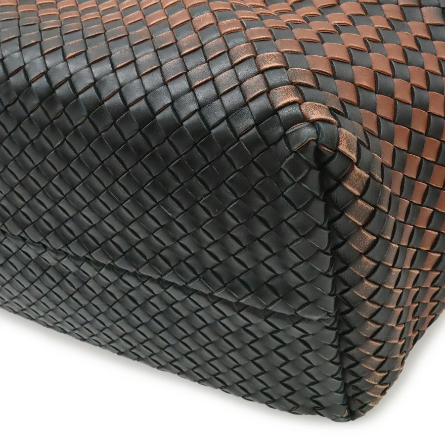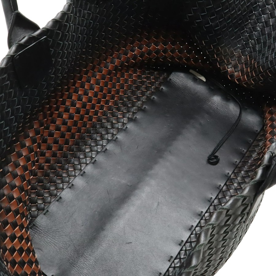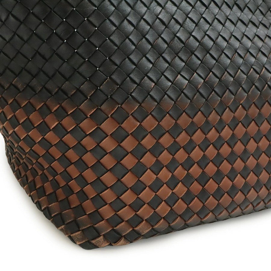 柔らかなレザーを格子状に編み込んだ独特のデザインが人気のイントレチャートのラージトートバッグでございます。