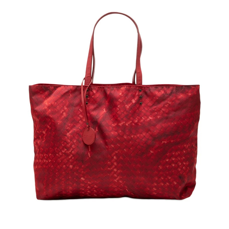 - ボッテガヴェネタ イントレッチオリュージョン トートバッグ レッド ナイロン レザー レディース BOTTEGAVENETA 【中古】