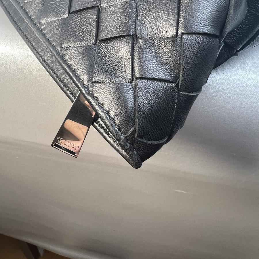 【アイテム】美品 BOTTEGA VENETA イントレチャート レザー ハンドバッグ ブラック A-10542