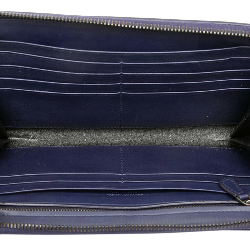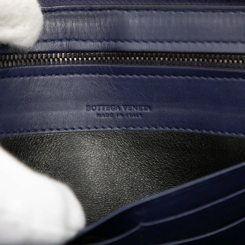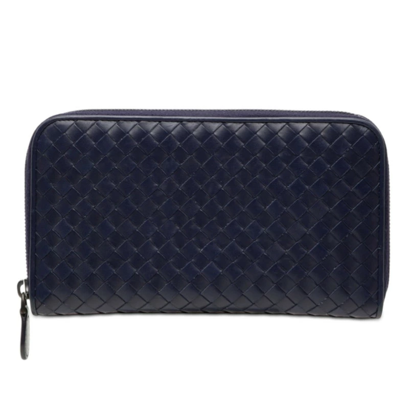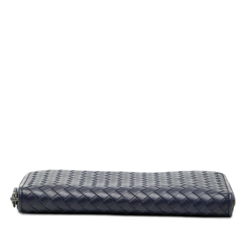 - ボッテガヴェネタ イントレチャート ラウンドファスナー 長財布 ネイビー レザー メンズ BOTTEGAVENETA 【中古】