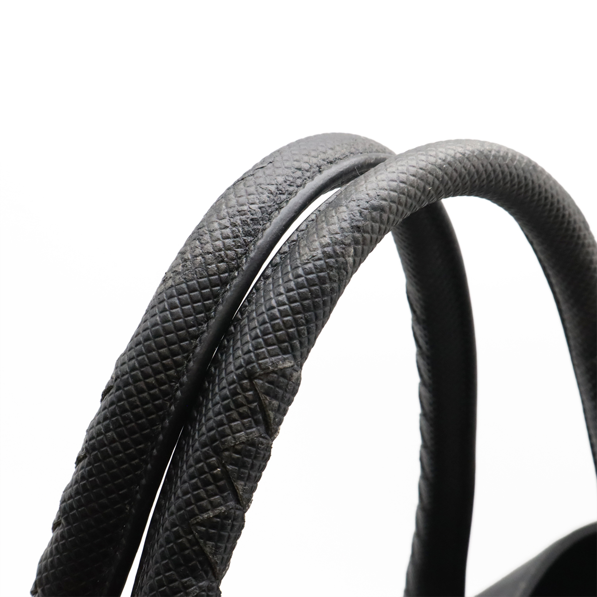 【コンディション】[外側]角、フチべたつき、下部端折れ癖、スレ、サイド上部若干のヒビ[内側]お香臭、レザー部分スレ[ショルダー]べたつき、編み込みフチ若干の剥がれ[金具]目立つダメージなし