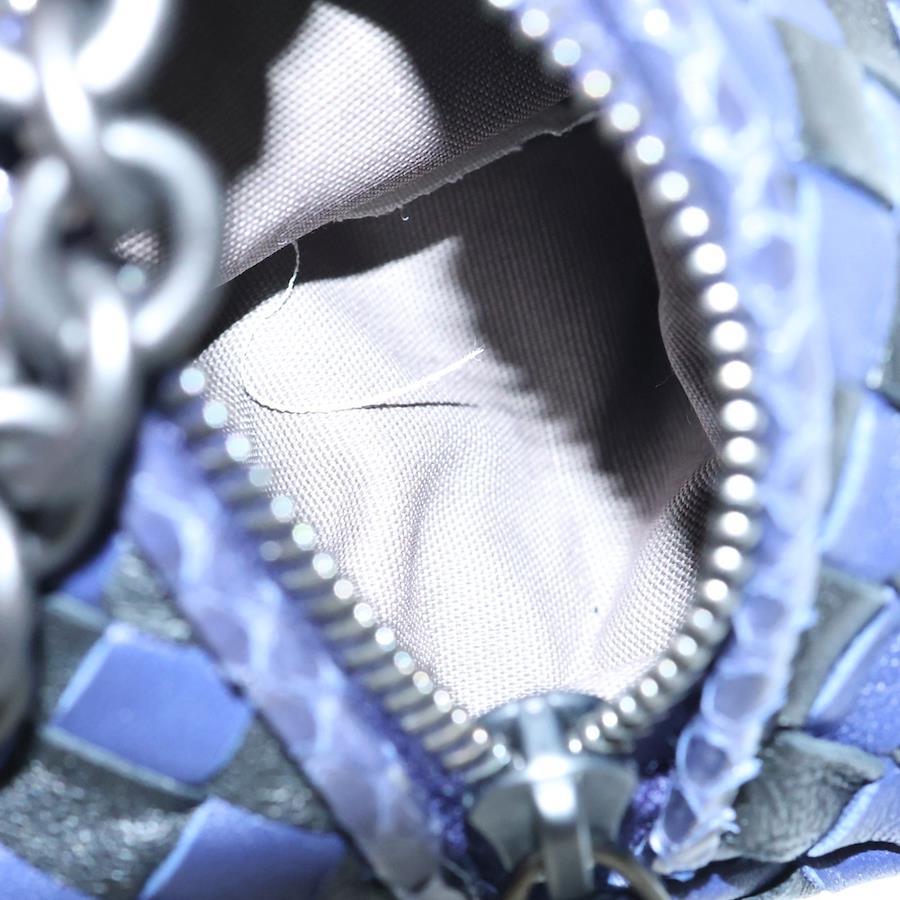 [モデル]ミニポーチ バッグチャーム 小物入れ キーリング ブルー×ブラック カーフ&パイソン