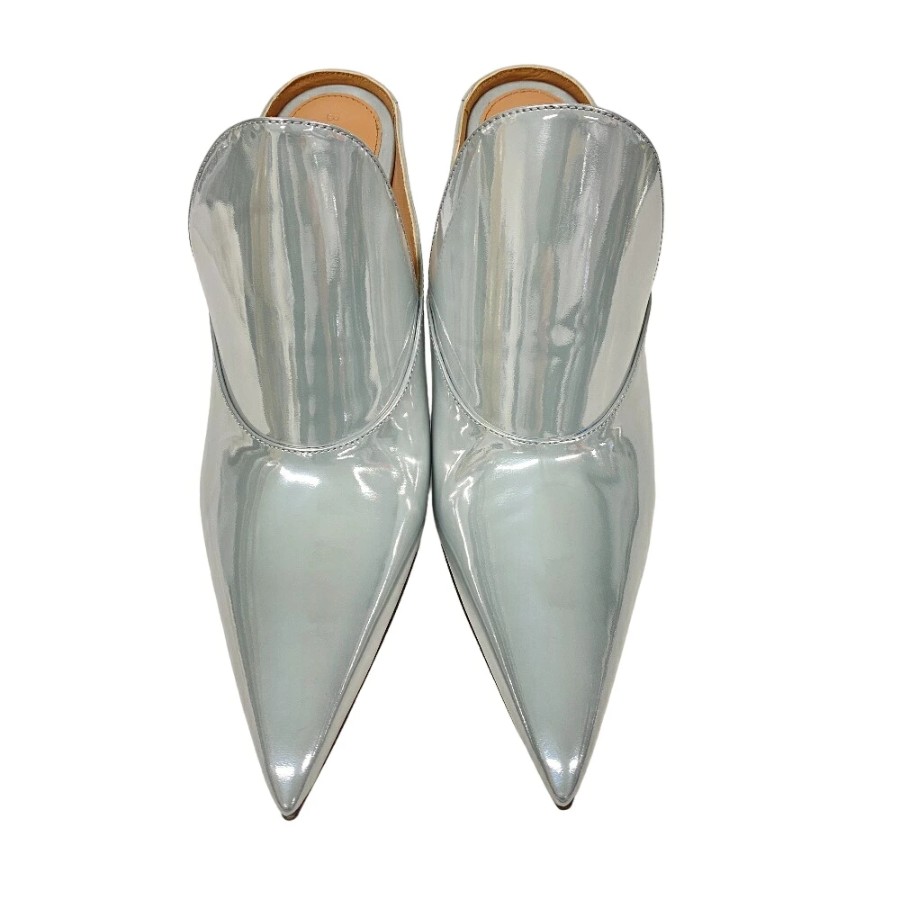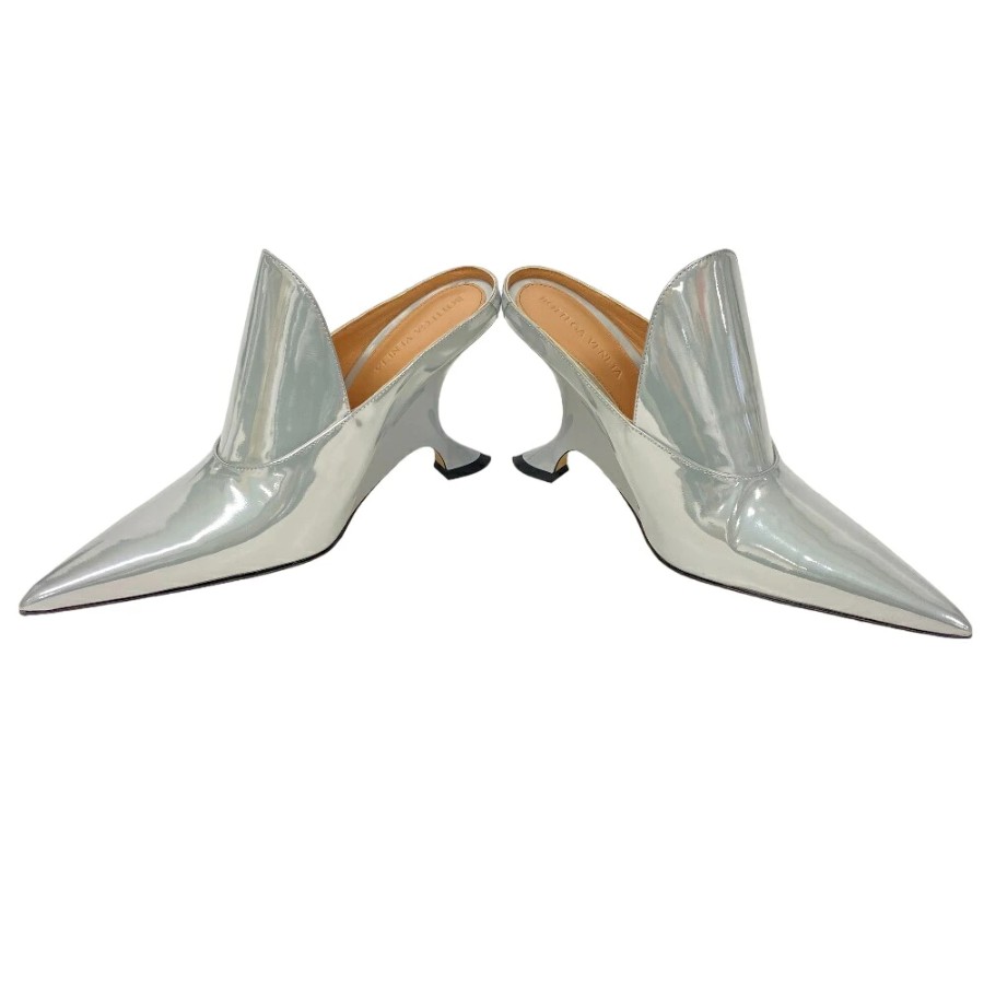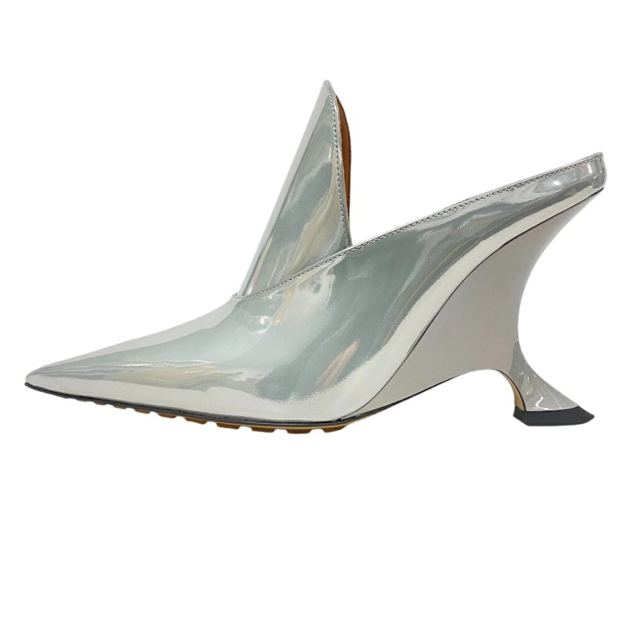 BOTTEGA VENETA Rocket Wedge Heel Laminated Leather Mules, Silver, Women's