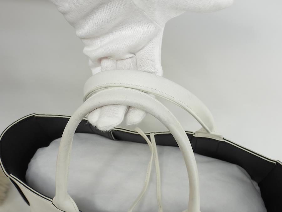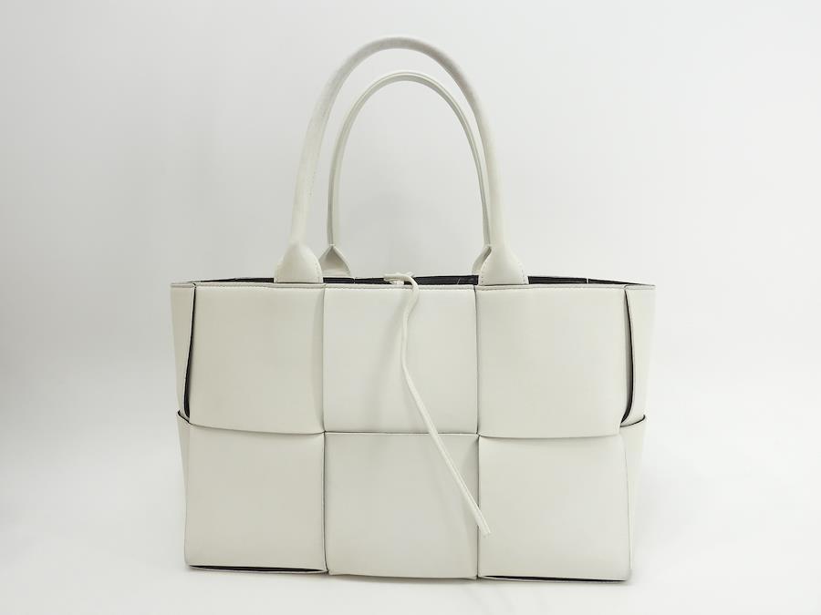 品名 : トートバッグ中 ハンドバッグ トップハンドルバッグメーカー : ボッテガヴェネタ (BOTTEGA VENETA)型番・素材 : スムースカーフスキンレザーライン・色 : スモールアルコ ホワイト マットシルバー金具参考定価 : 462000円サイズ : W30.5 x H20 x D11.5 x G36 cm製造番号 : B09832137G総重量 : 630g 本体重量 : 630g付属品 : 写真の中に写っているものです