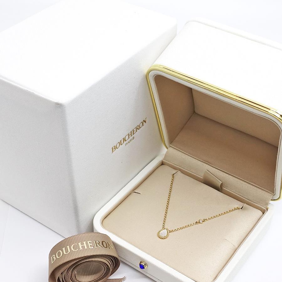 Product Rank: AProduct Condition: There are very slight scratches that are hard to see with the naked eye, but no noticeable damage and the item is in very good condition.To maintain its proportions, we do not polish it to like-new condition, but we do ultrasonically clean it in-store.While we take great care, as this item was displayed in-store, very slight scratches may occur.Please review the images and feel free to contact us with any questions.*The texture and color may appear different from the actual product depending on the shooting environment and your monitor settings.Brand: BOUCHERONProduct Name: Serpent Bohème Extra Small NecklaceModel Number: JPN00626Serial No.:Stamp:Material: 18K Yellow GoldStones: Mother-of-Pearl: 0.75ctDiamond: 0.03ctSee official websiteColor: White x Yellow GoldSize: Necklace: Approx. 38cm-42cm-44cmTop: Approx. 7.5mm W x 10.3mm HWeight: Approx. 4.4gSuggested Retail Price: ¥276,100See official websiteAccessories: Inner box, outer box, ribbon