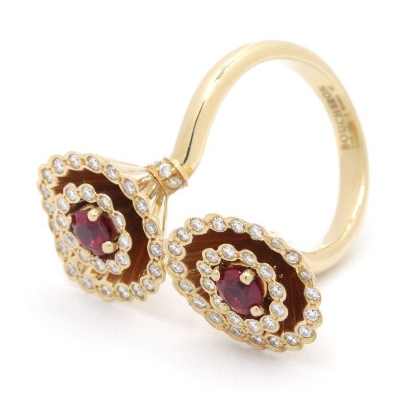 Boucheron Exquis Confidence Ruby Ring #52, Size 11.5, 18K Yellow Gold, Ruby, Diamond, Approximately 13.5g, Pre-owned