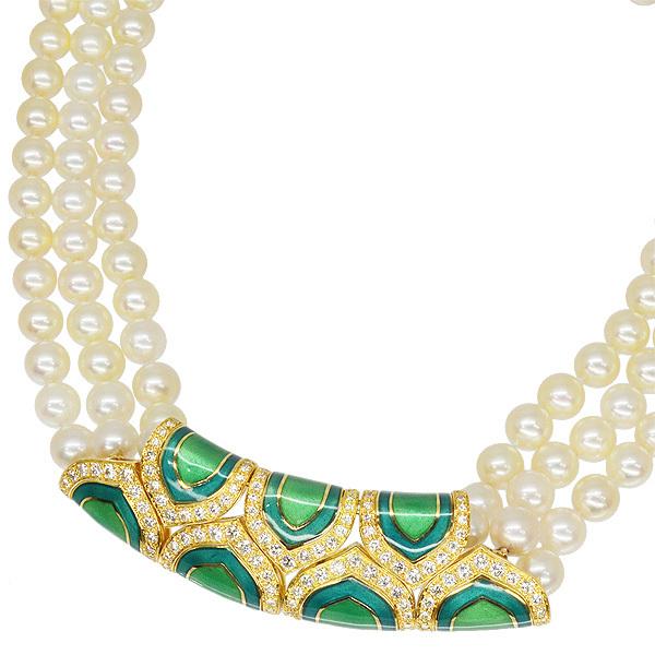 Product Name: Pearl 6.0-6.8mm Enamel Diamond Necklace