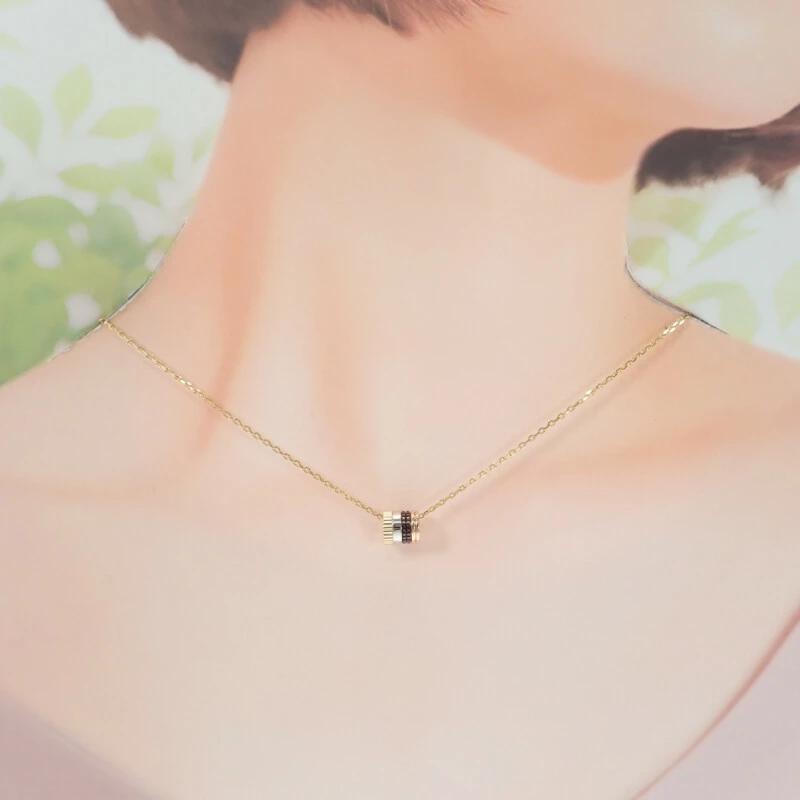 イエローゴールド、ホワイトゴールド、ピンクゴールドに加え、ブシュロン独自のブラウンPVDのコントラストが胸元に華やかさを与えてくれます。