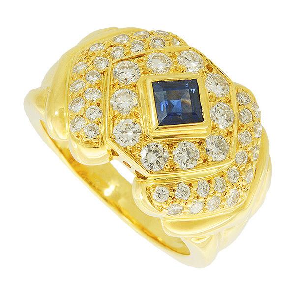 Boucheron Sapphire and Diamond Ring, 18K Yellow Gold, Size 11