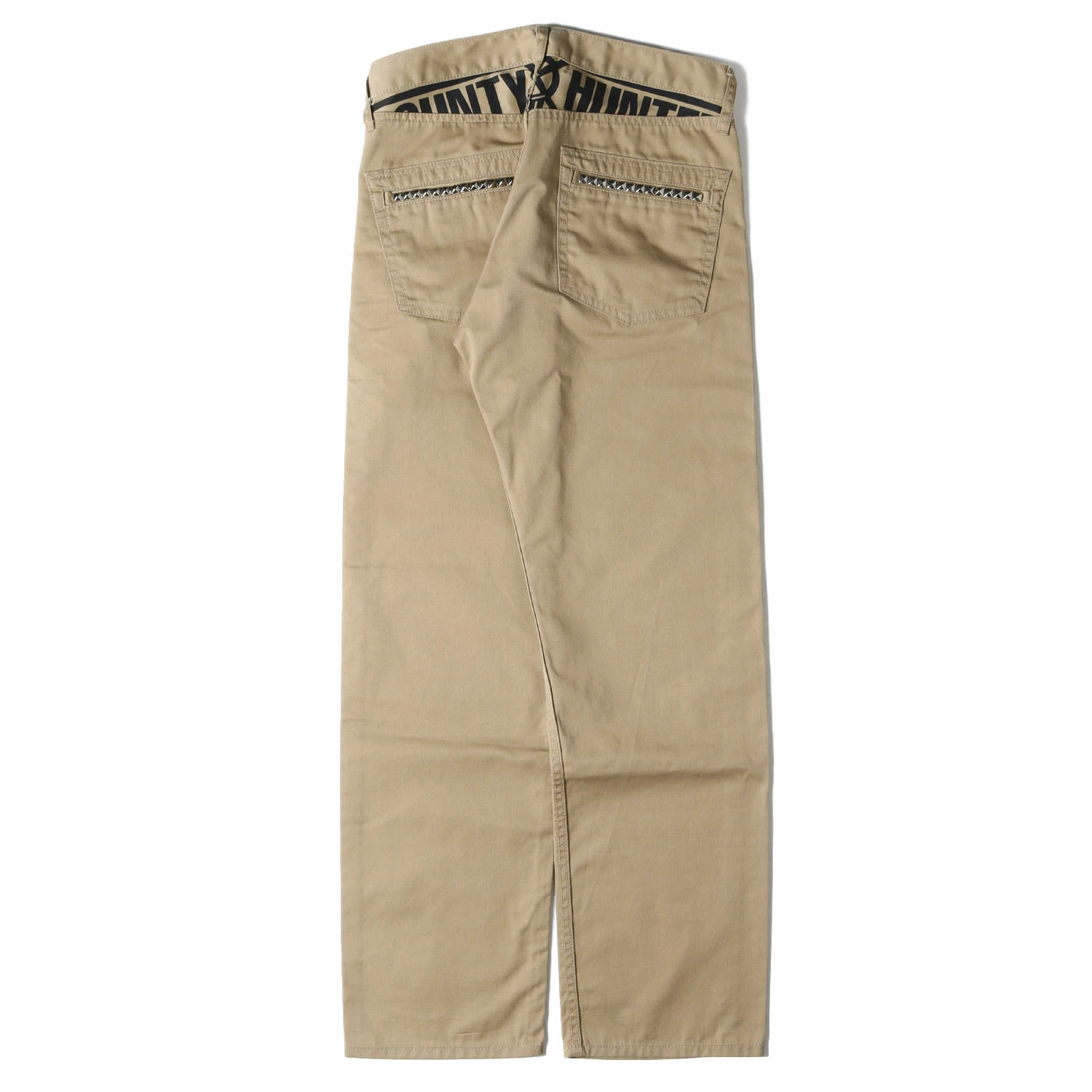| 商品説明 | T/Cツイル生地を使用したジッパーフライ5ポケットパンツです。バックポケットにスタッズ、バックヨークにブランドロゴがデザインされております。 |
