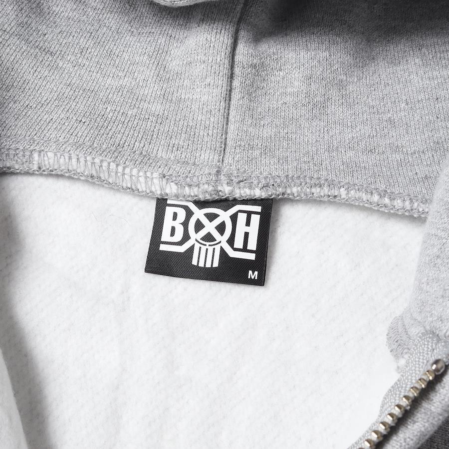裏地起毛スウェットを使用したリバースウィーブタイプのフルジップパーカーです。胸にオールドイングリッシュロゴ、バックにスカルボーンをあしらったデザインになります。