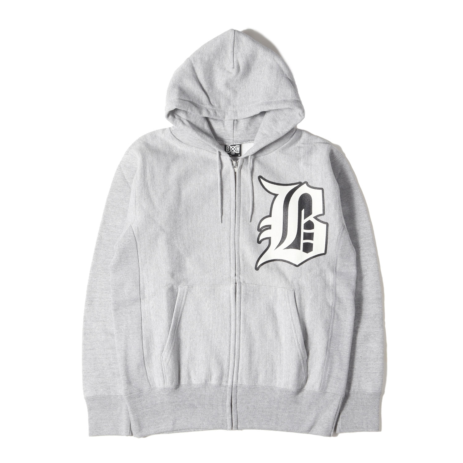 商品説明裏地起毛スウェットを使用したリバースウィーブタイプのフルジップパーカーです。胸にオールドイングリッシュロゴ、バックにスカルボーンをあしらったデザインになります。