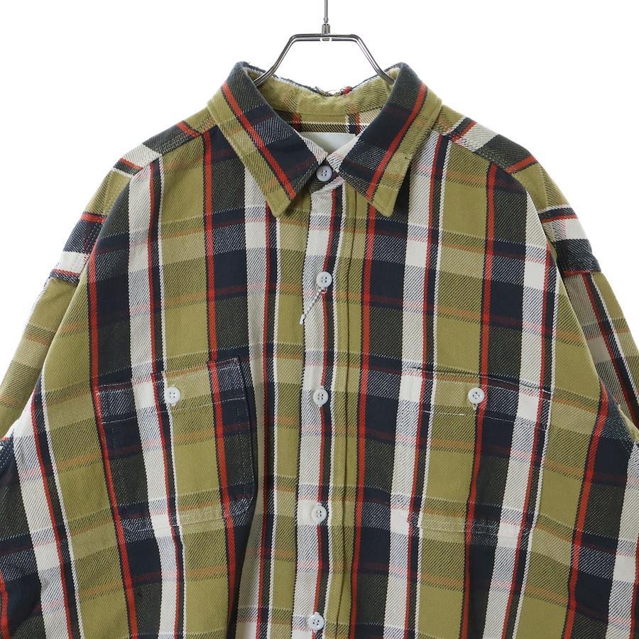 Bow Wow 23AW Repair Aging Flannel Shirt, Distressed Long Sleeve Beige, BW2302-RAFS, Size XL