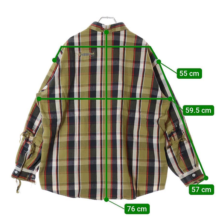 ■商品情報[商品番号]9225H160036[ブランド]BOWWOW(バウワウ)[モデル]23AW REPAIR AGEING FLANNEL SHIRTS ダメージ加工 フランネルシャツ 長袖シャツ ベージュ BW2302-RAFS[サイズ]着丈:76センチ 身幅:59.5センチ 肩幅:55センチ 袖丈:57センチ表記サイズ:XL■状態・コンディション[状態ランク]ランク S新品同様品または試着程度の使用感有り[備考]デザインによるダメージ加工がございます。