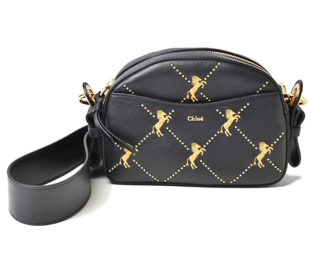 クロエより、2wayバッグです。丸いフォルムで、女性らしくエレガントなデザイン。リトルホースの刺繍と格子状に並べたスタッズがエレガントな印象。安定感のある幅広のストラップは、スタイルにあわせて取り外しが可能です。
