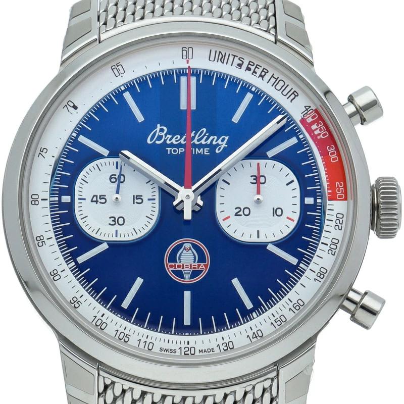 | 1960年代、若者文化の高まりと共に誕生した「トップタイム」は、自由とスピードを象徴するブライトリングの意欲作。その精神を現代に受け継ぎ2023年に登場したのが本モデル「トップタイム B01 シェルビー コブラ」です。ケースは42mmと腕元で確かな存在感を放ちつつ絶妙な厚みで快適な装着感を実現しました。 |