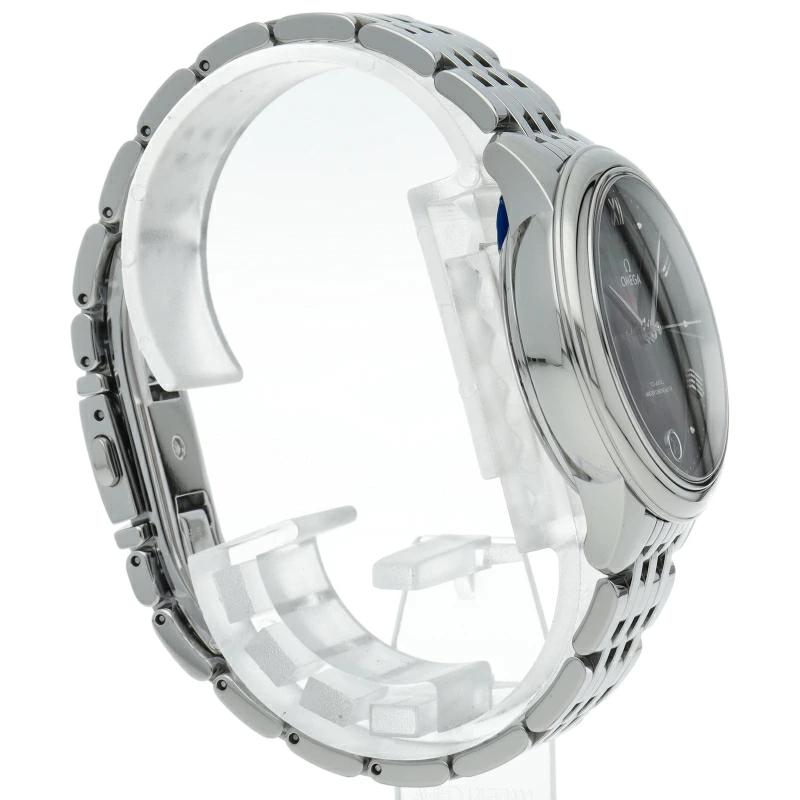 | オーソドックスなデザインの「デ・ヴィル プレステージ」。こちらはオメガが誇るコーアクシャルエスケープメントを搭載した自動巻きモデルです。15,000ガウスの耐磁性能を誇るオメガの新型ムーブメントの“cal.8800”を搭載。 |