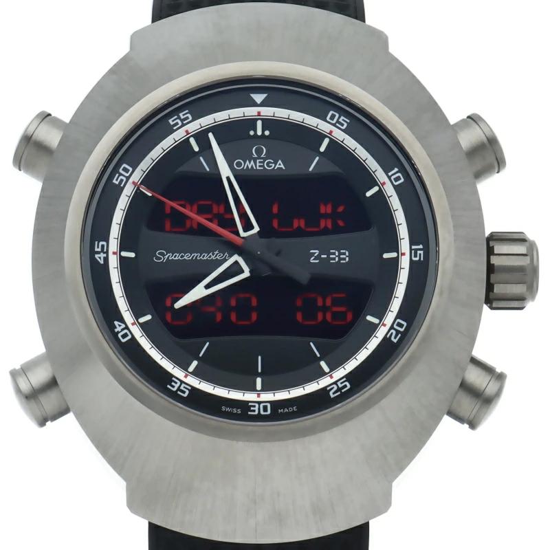 | 「スペースマスター Z-33」は、歴代「スピードマスター」の中でも人気を博したパイロットラインと呼ばれる特徴的な形状のケースに、最新の多機能クォーツムーブメント、キャリバー5666を搭載しています。また、ケース両サイドにある4つのプッシャーをリュウズと共に使うと、さまざまなデジタル機能をすべてコントロールすることができます。 |