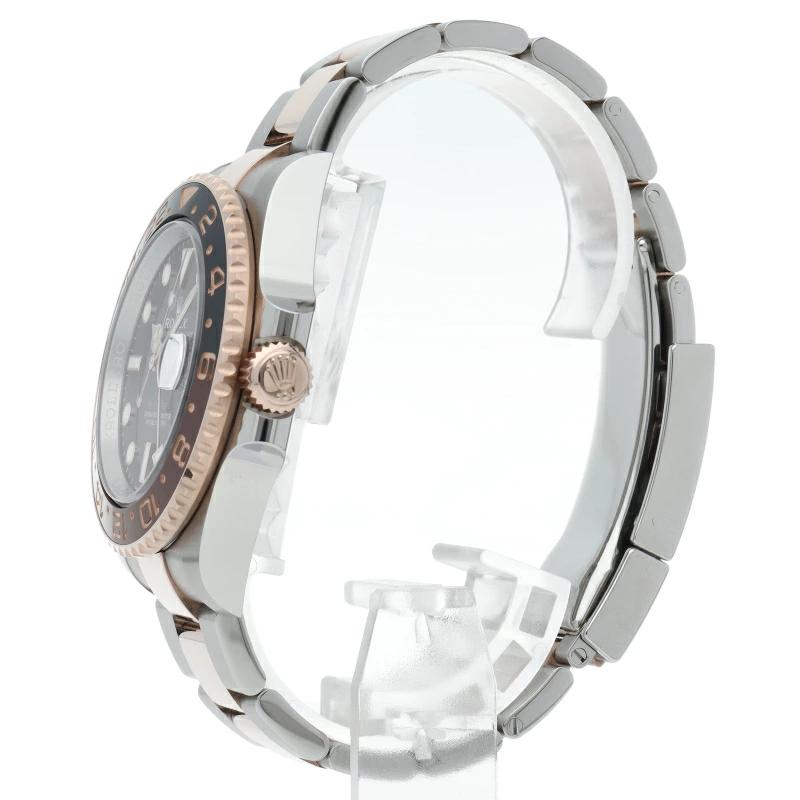 | セラクロムベゼルでのGMTマスター2。ロレックスの最新ムーブメント「Cal.3285」を搭載しており、エネルギー効率が最適化されたクロナジー脱進機、テンプを衝撃から守る為の耐震装置パラフレックス ショック・アブソーバそして70時間ものロングパワーリザーブとロレックスの最新技術を駆使したムーブメントになっています。 |