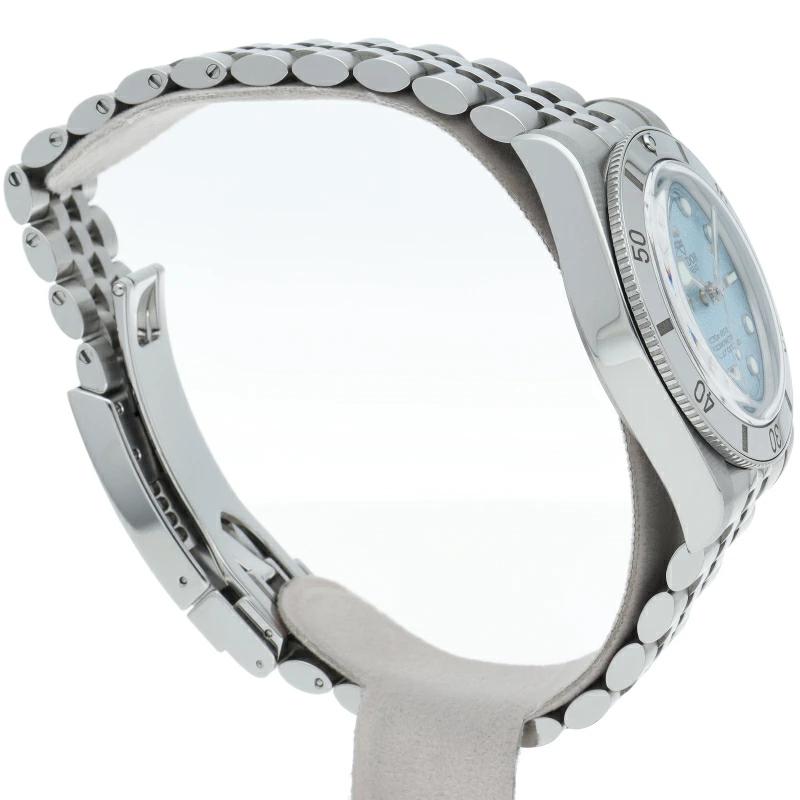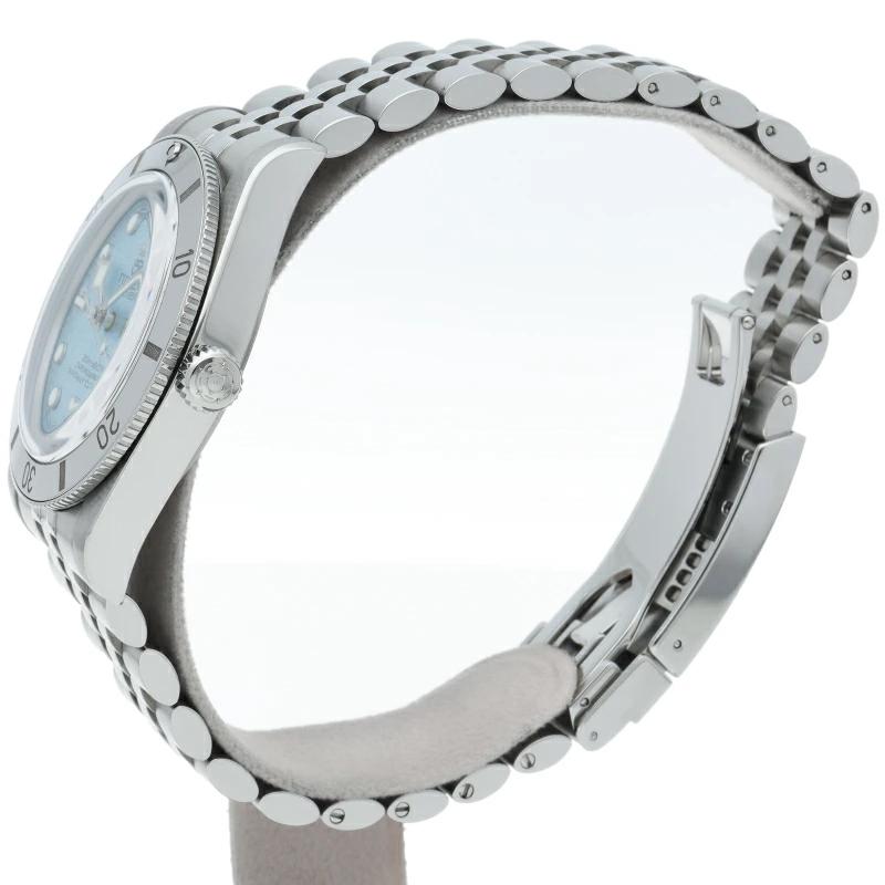 | ブラックベイ 54 “ラグーンブルー”は、蒼く澄んだ波と真っ白な砂浜に陽光が降りそそぐ、どこか暖かい場所を思い起こさせる。37mmのケース、サンドテクスチャーの「ラグーンブルー」ダイアル、そしてミラーポリッシュ仕上げのベゼル。さらに、心地良く手首に馴染む5列リンクのブレスレットが、着用者を南国の浜辺へと誘う。最先端のマニュファクチュールキャリバーMT5400。 |