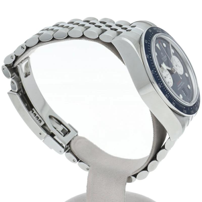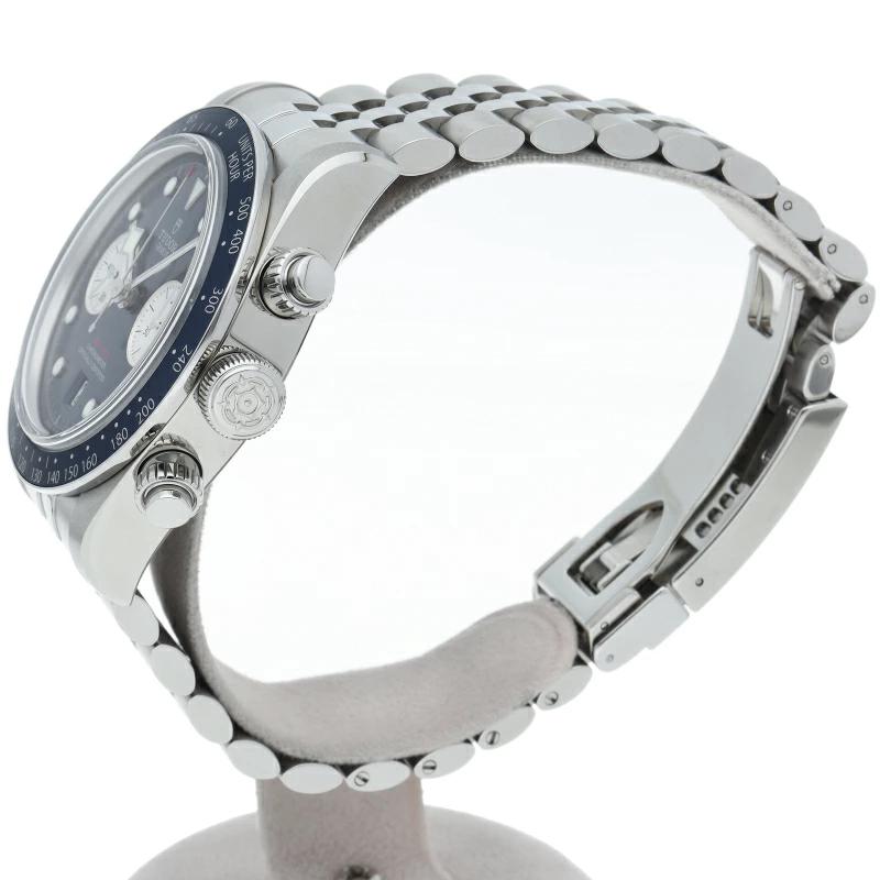 | チューダーダイバーズウォッチのアイコンとなっている「スノーフレーク針」と初期のチューダークロノグラフから着想を得た、45分カウンターと6時位置のカレンダーはそのままに、鮮やかなブルーのダイヤルとベゼルを備えます。セルフアジャストが可能な“T-fit”クラスプを搭載し、簡単な操作で8mmの長さを5段階で調節可能になっており自分にぴったりなつけ心地に調整することができます。 |