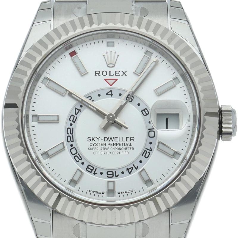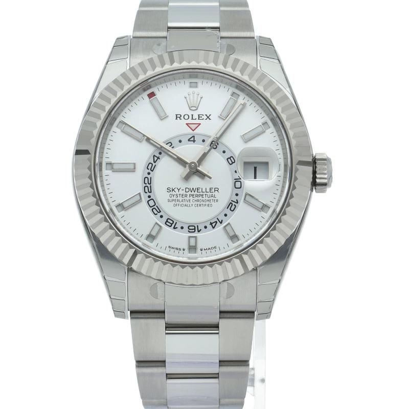 Brand New [Box and Warranty] Rolex Sky-Dweller Oyster Watch with QR Code Sticker, 336934, 18K White Gold/Stainless Steel Men's Watch