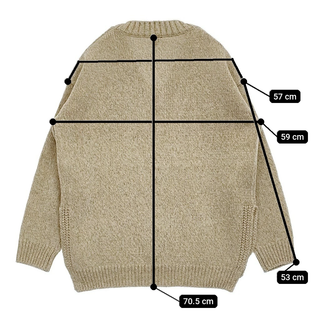 | 実寸サイズ | 肩幅:約57cm 着丈:約70.5cm 身幅:約59cm 袖丈:約53cm ※採寸画像がある商品はハンガーに吊るした状態での計測のため、平置きでの採寸とは差が生じる場合がございます。平置きでの実寸サイズをご希望の場合は、ご購入前に必ずご質問ください。 ※記載以外のサイズが合わないことを理由とした返品はできませんので、 記載部分以外で実寸サイズの気になる箇所があれば必ず購入前にご質問ください。 |