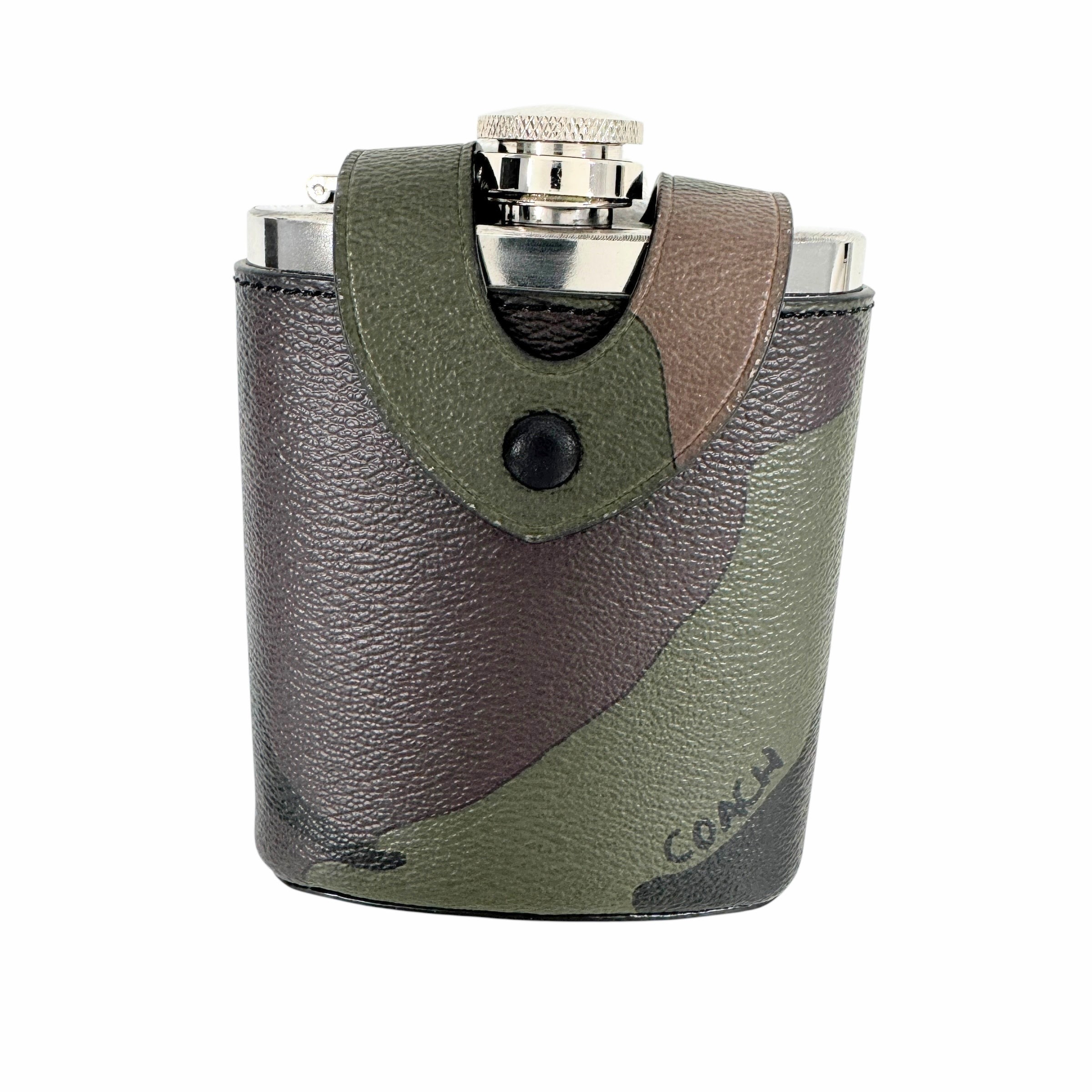 Brand new, unused Coach Whiskey Bottle in camouflage pattern. J0629
