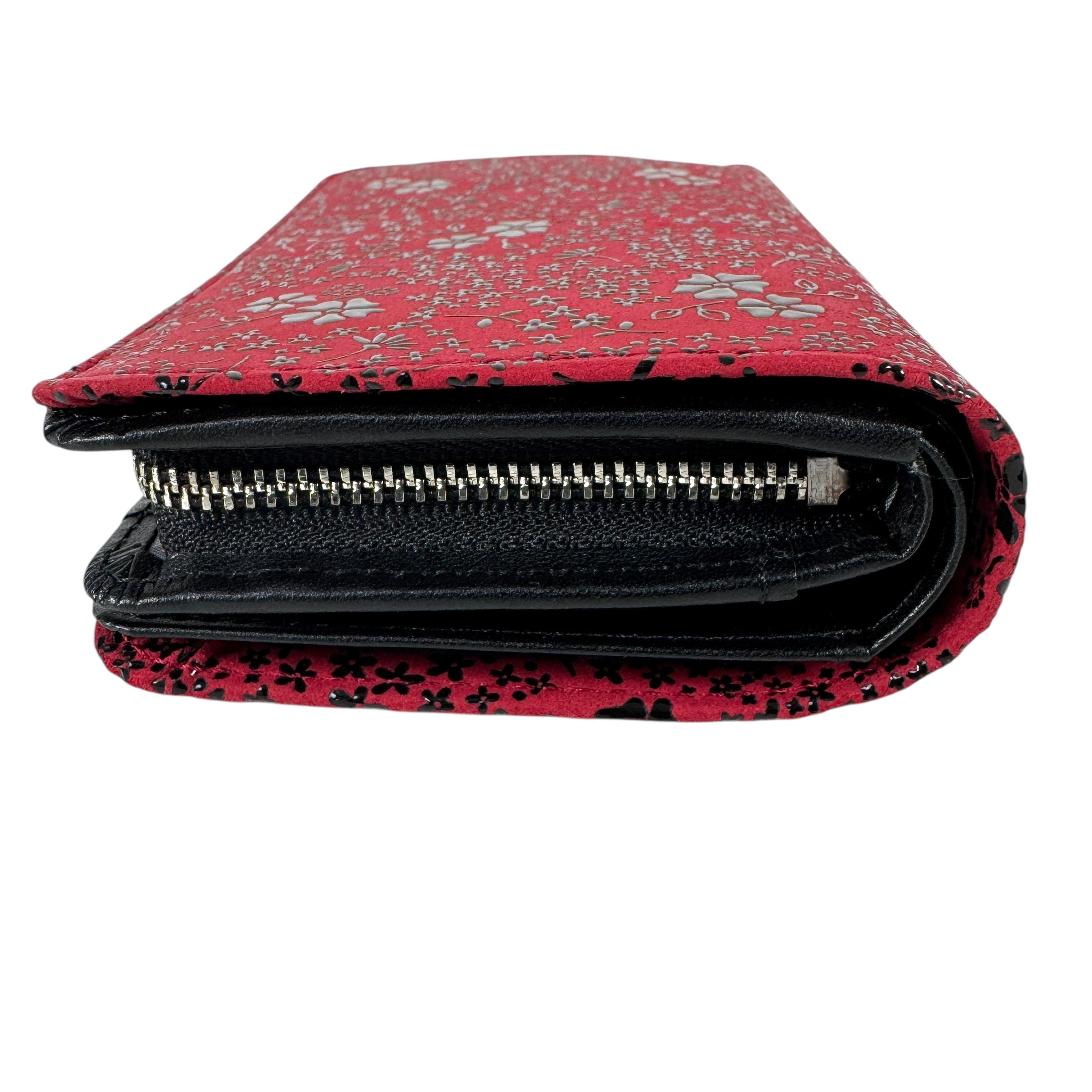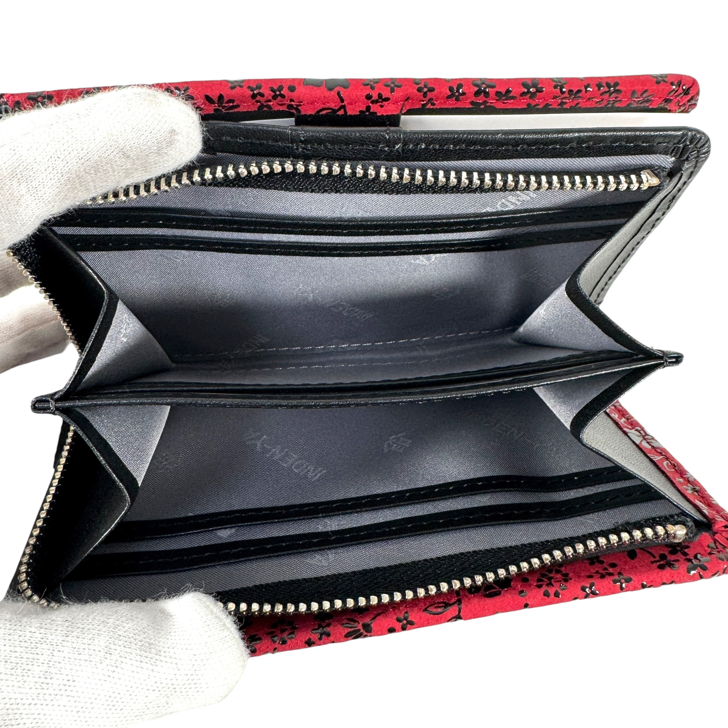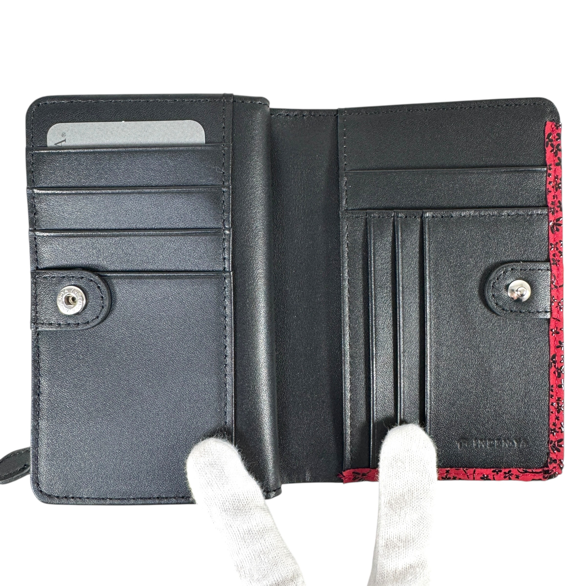 Brand new, unused Inden-ya Inden folding wallet with American blue pattern and red accents. J0698